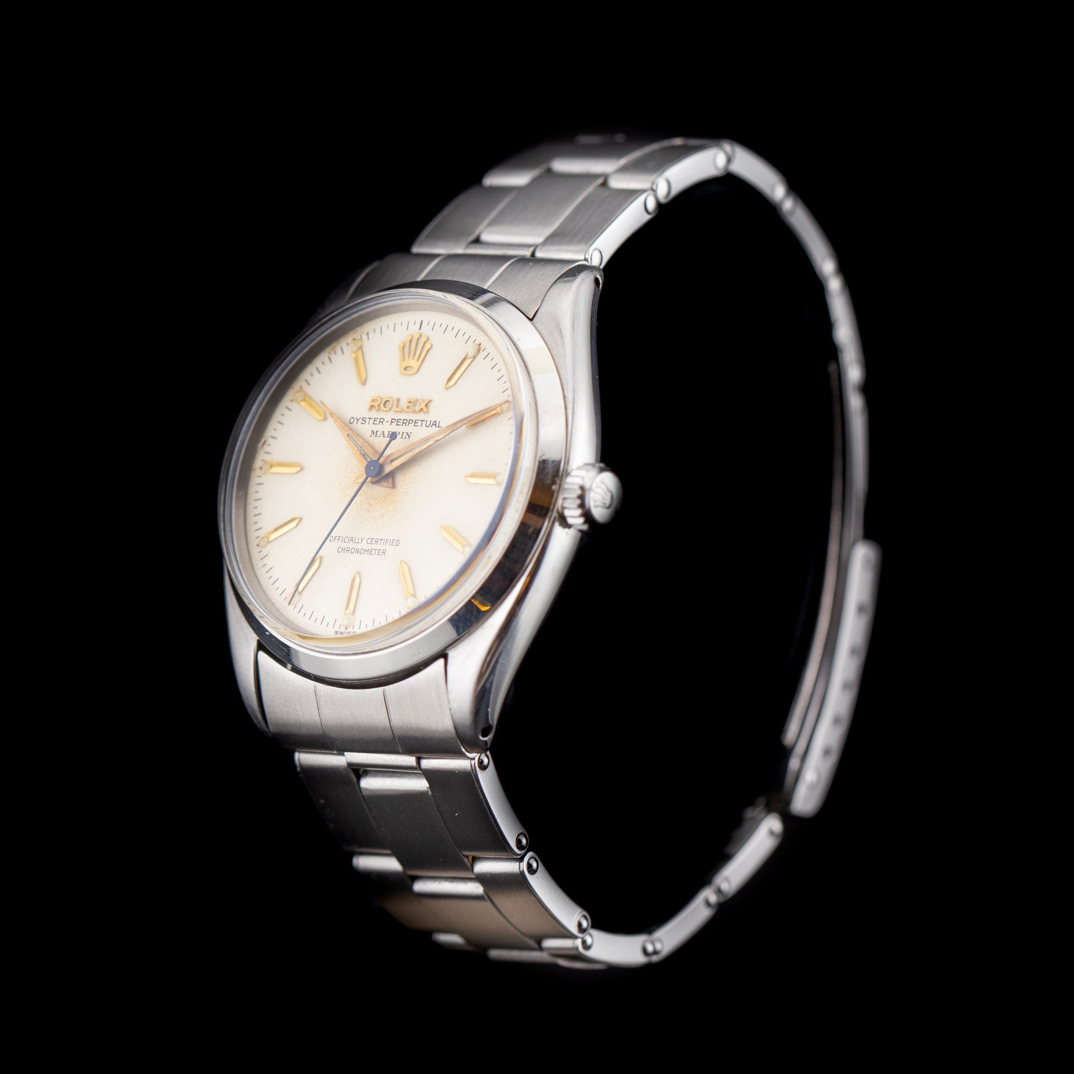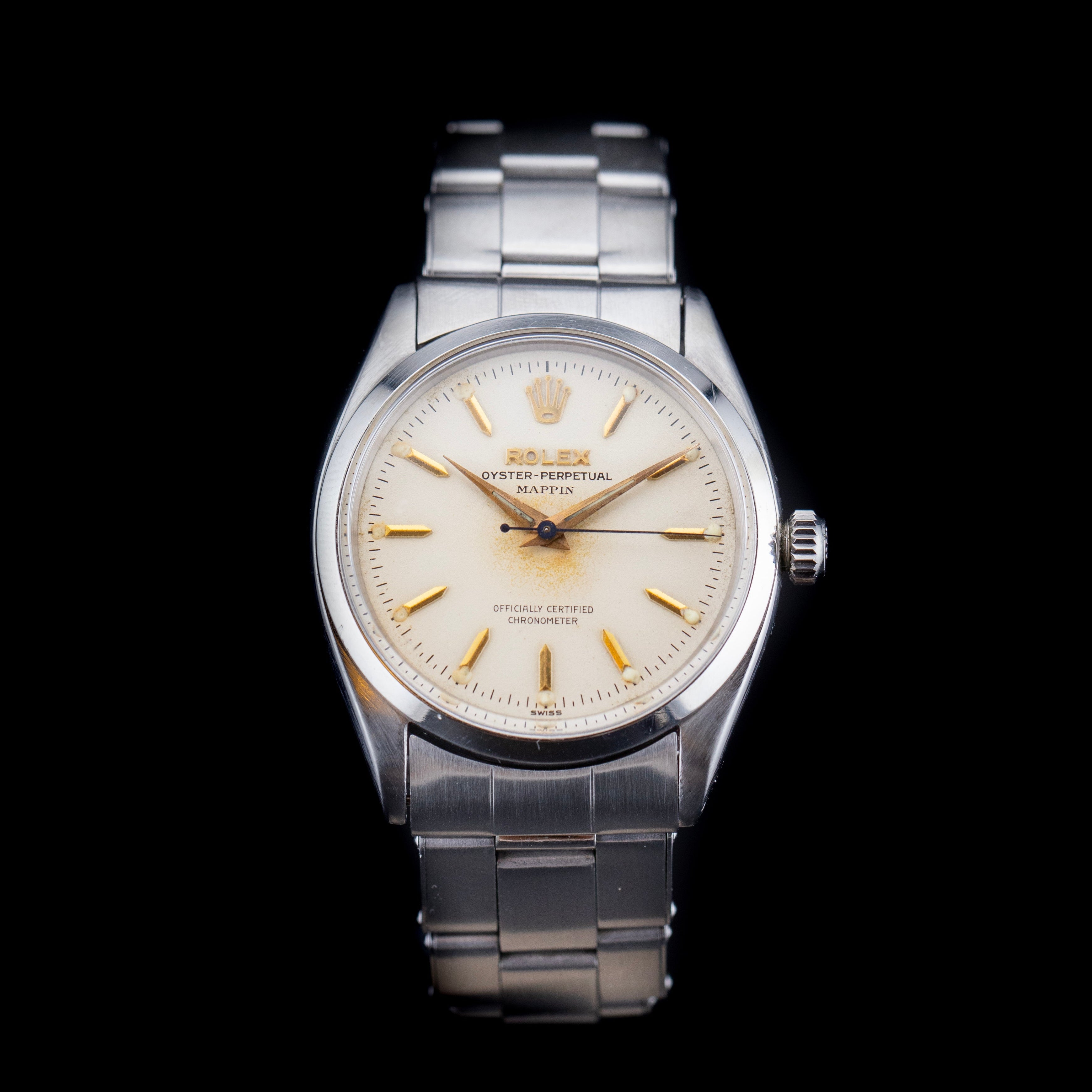 Mais ce qui fait de cette pièce un véritable collector, c’est la présence de la double signature "Rolex / Mappin" à 12 heure. Ce détail, rare et recherché, rappelle l’époque où Rolex distribuait certaines de ses montres par le biais de maisons de luxe prestigieuses comme Mappin & Webb, à Londres. Ces montres étaient généralement réservées à une clientèle fortunée, et la double signature en fait aujourd’hui des pièces convoitées par les collectionneurs du monde entier.