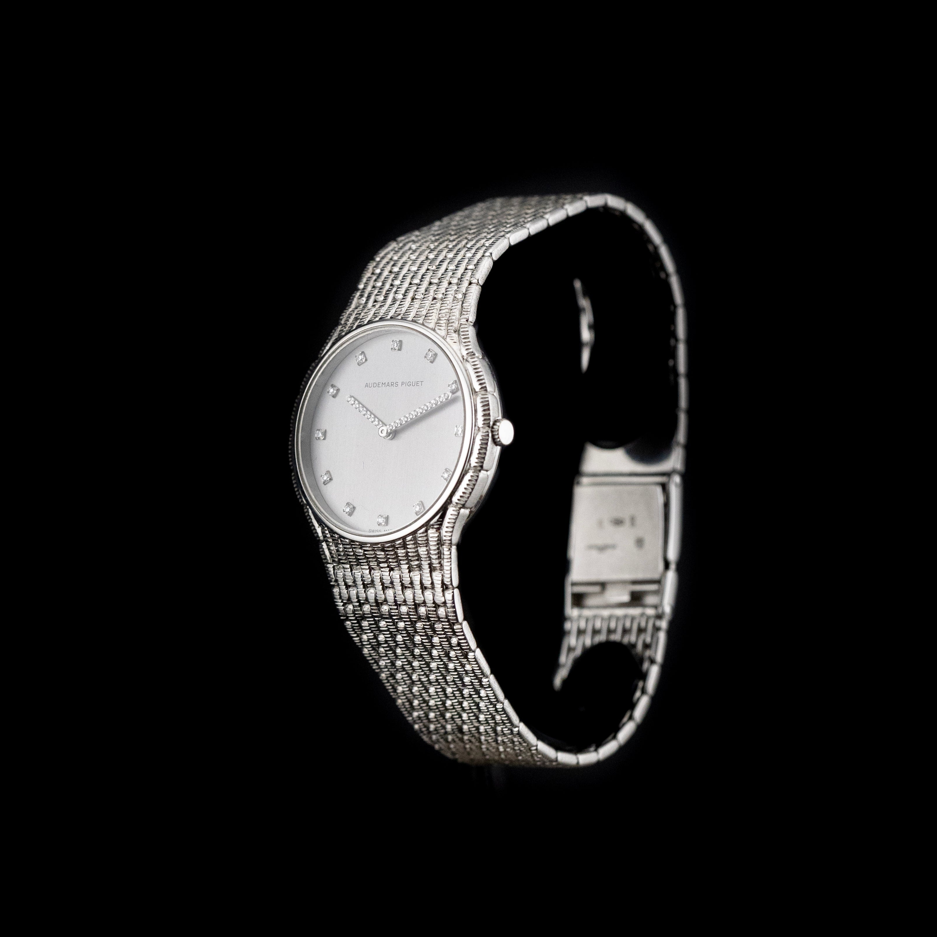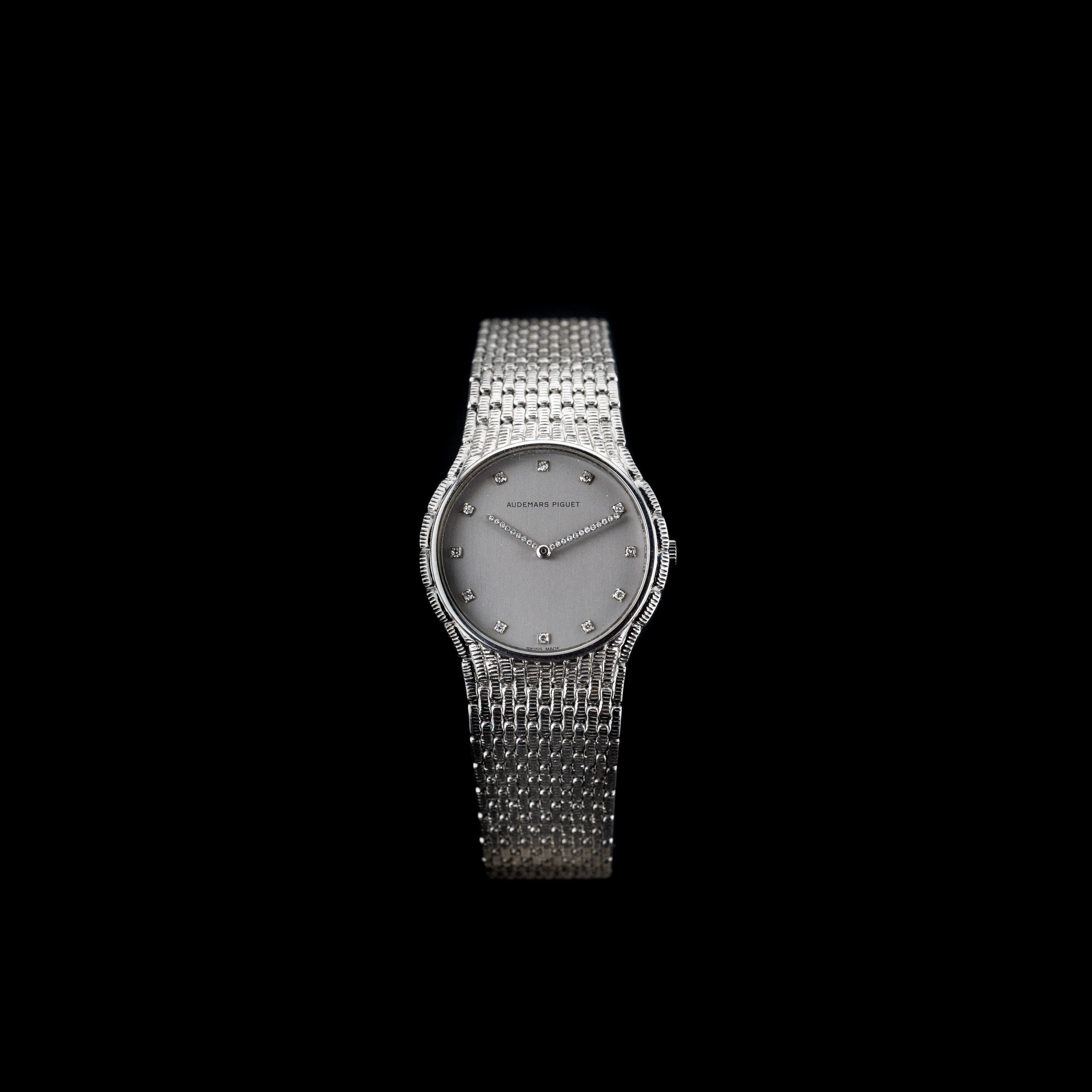 L'Atelier du temps à le plaisir de vous présenter cette élégante Audemars Piguet Cobra «Diamond» ("Grey dial") datant de 1980’s.
