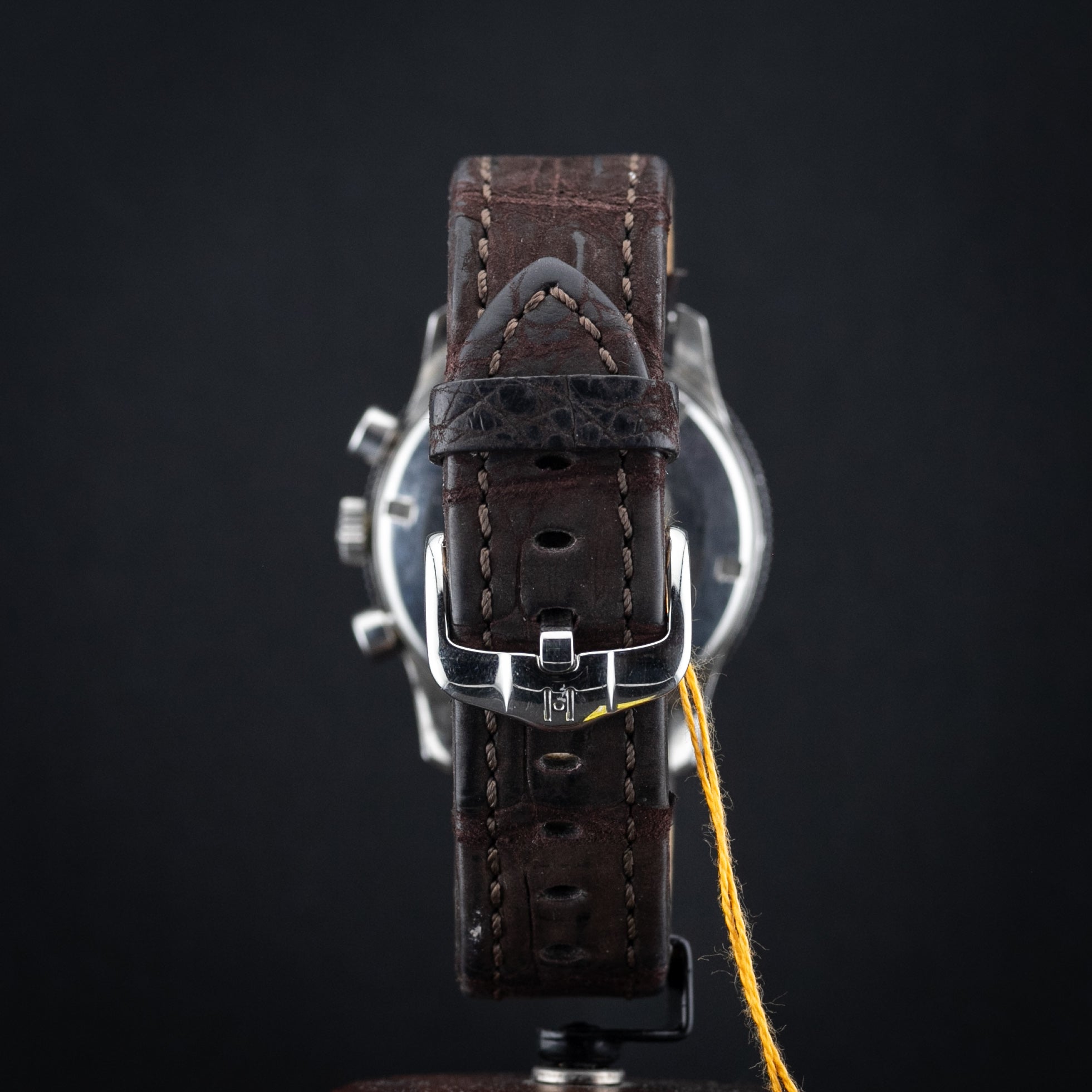 La montre est accompagnée de sa boîte ainsi que de ses papiers d'origine. Elle a été révisée par nos horlogers et bénéficie d'une garantie de 3 ans.