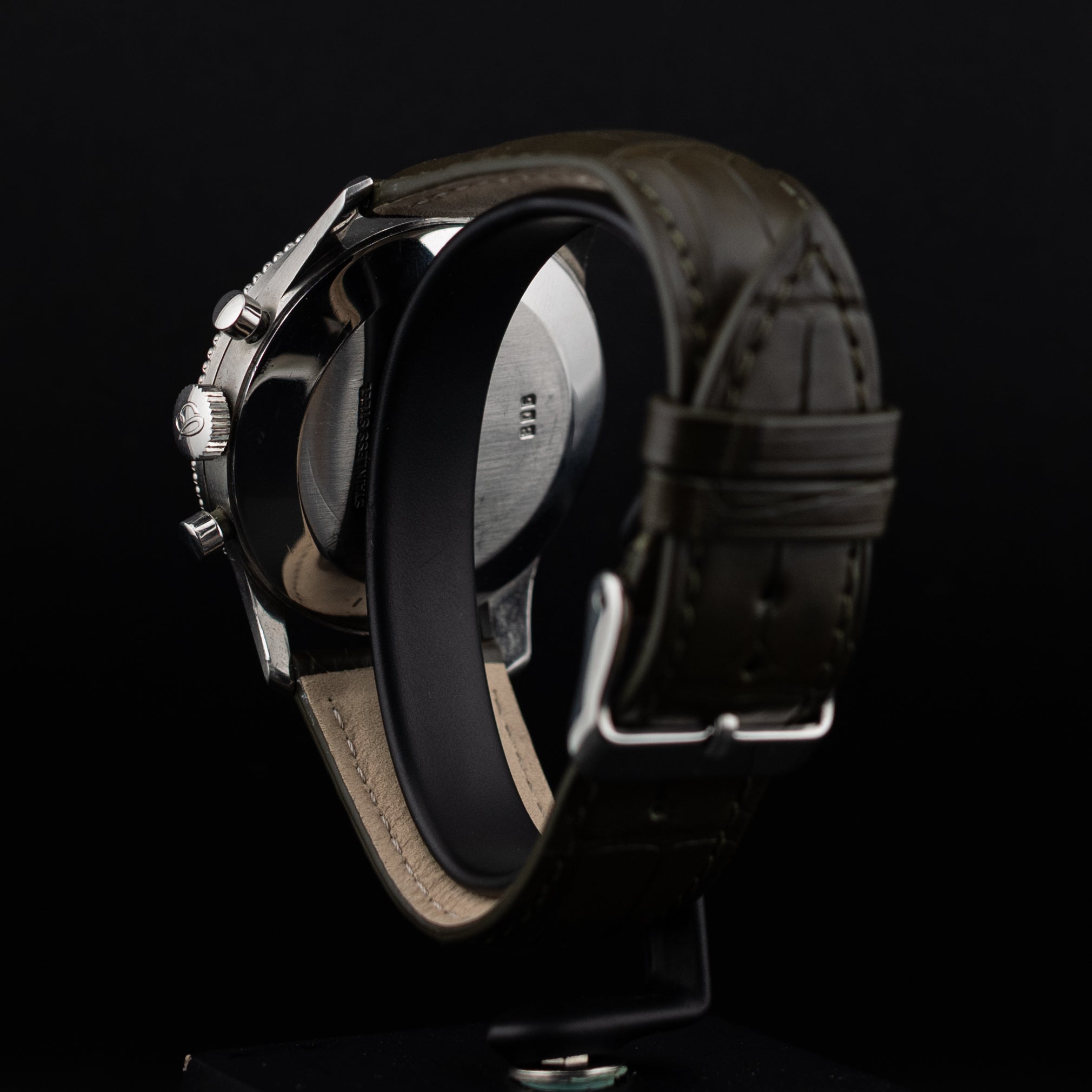 Le diamètre du boîtier est fixé à 41 mm, ce qui est énorme pour l’époque. De taille suffisante pour faciliter la lecture de toutes les informations fournies par le cadran.