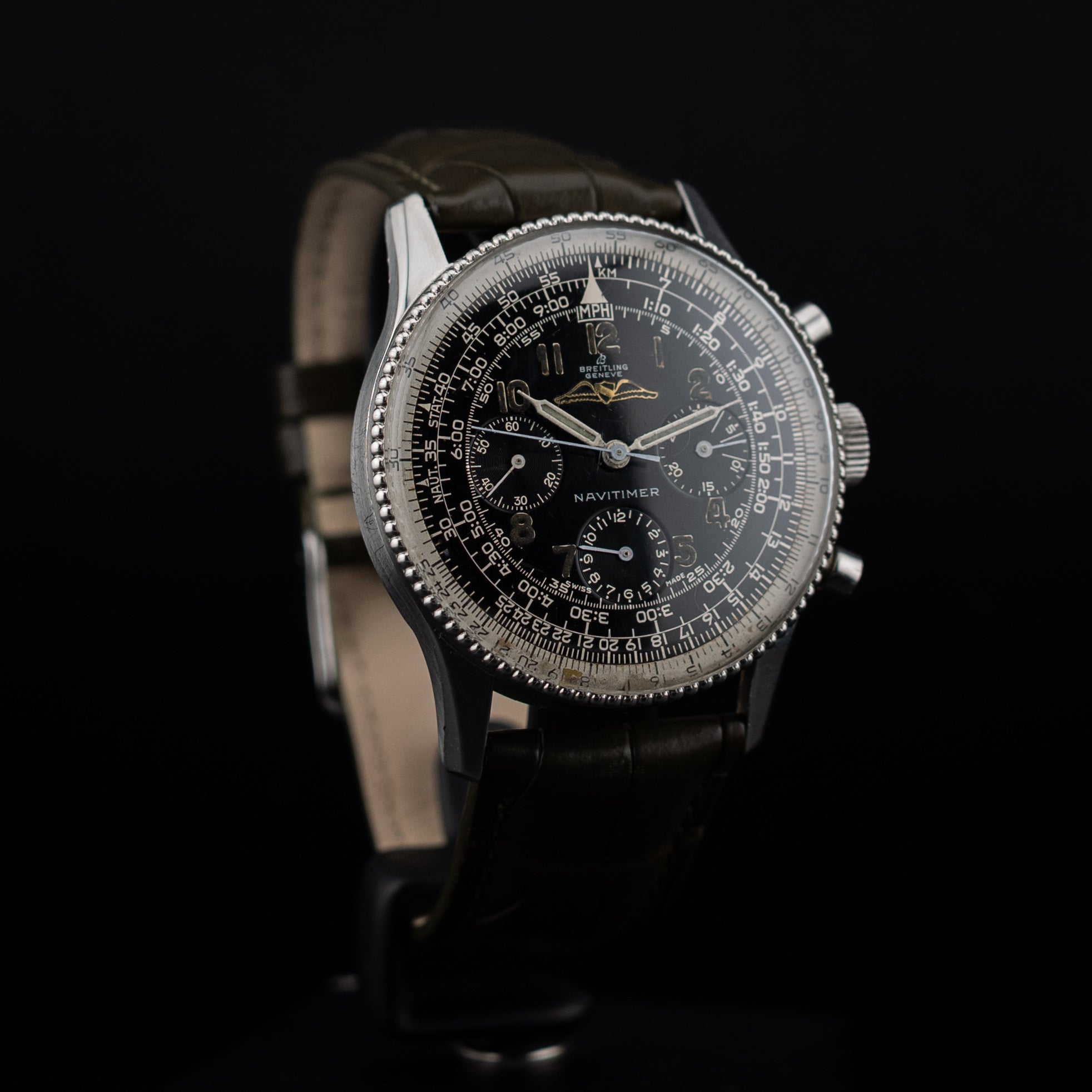 A cette époque, qui disait calculs disait règle à calcul logarithmique. Willy Breitling adapte donc la règle à calcul logarithmique originale du Chronomat des années 1940 aux besoins de l’aviation et l’incorpore à une lunette tournante bordée de petites perles visant à faciliter sa manipulation.