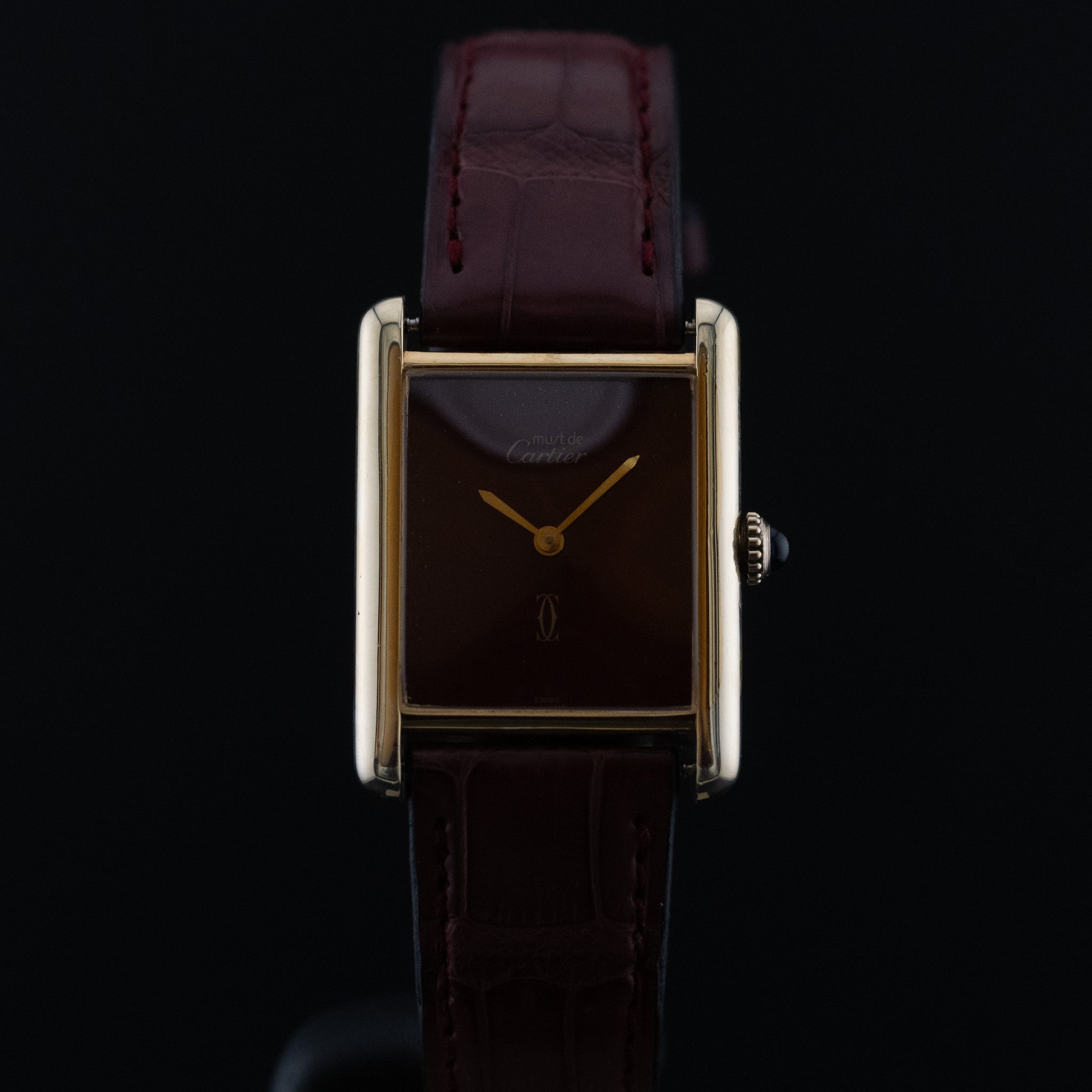 L'Atelier du temps à le plaisir de vous présenter cette Cartier Must «Burgundy»("Bordeaux Burgundy dial") datant de 1990’s.