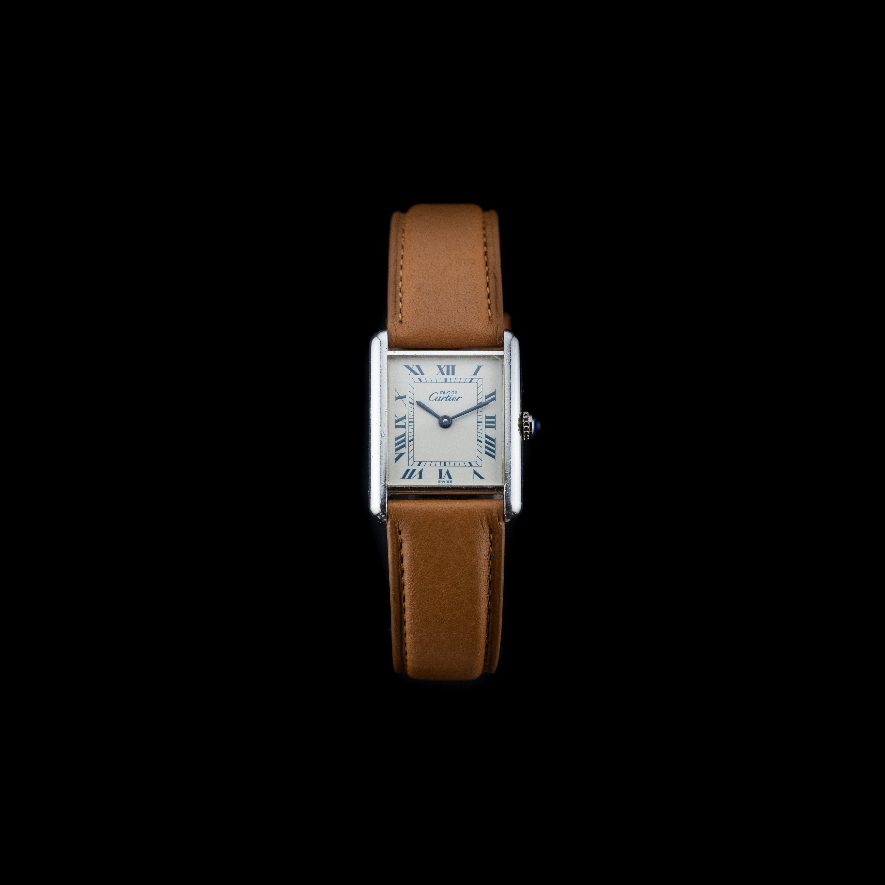 L'Atelier du temps à le plaisir de vous présenter cette rare Cartier Tank Must ("White/Blue dial") datant de 1990’s.