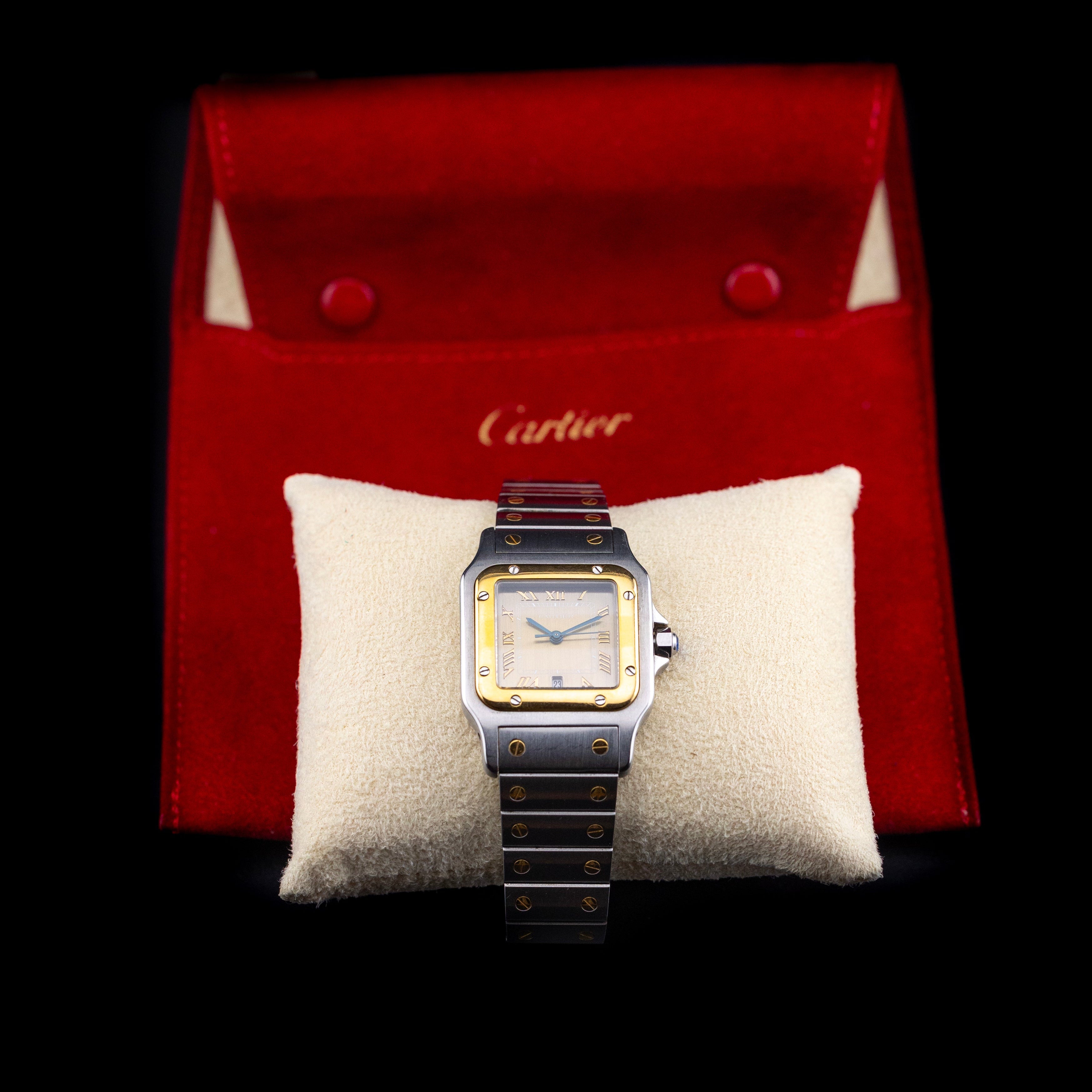 L'Atelier du temps à le plaisir de vous présenter cette Cartier Santos Galbée ("Golden dial") datant de 1990’s.