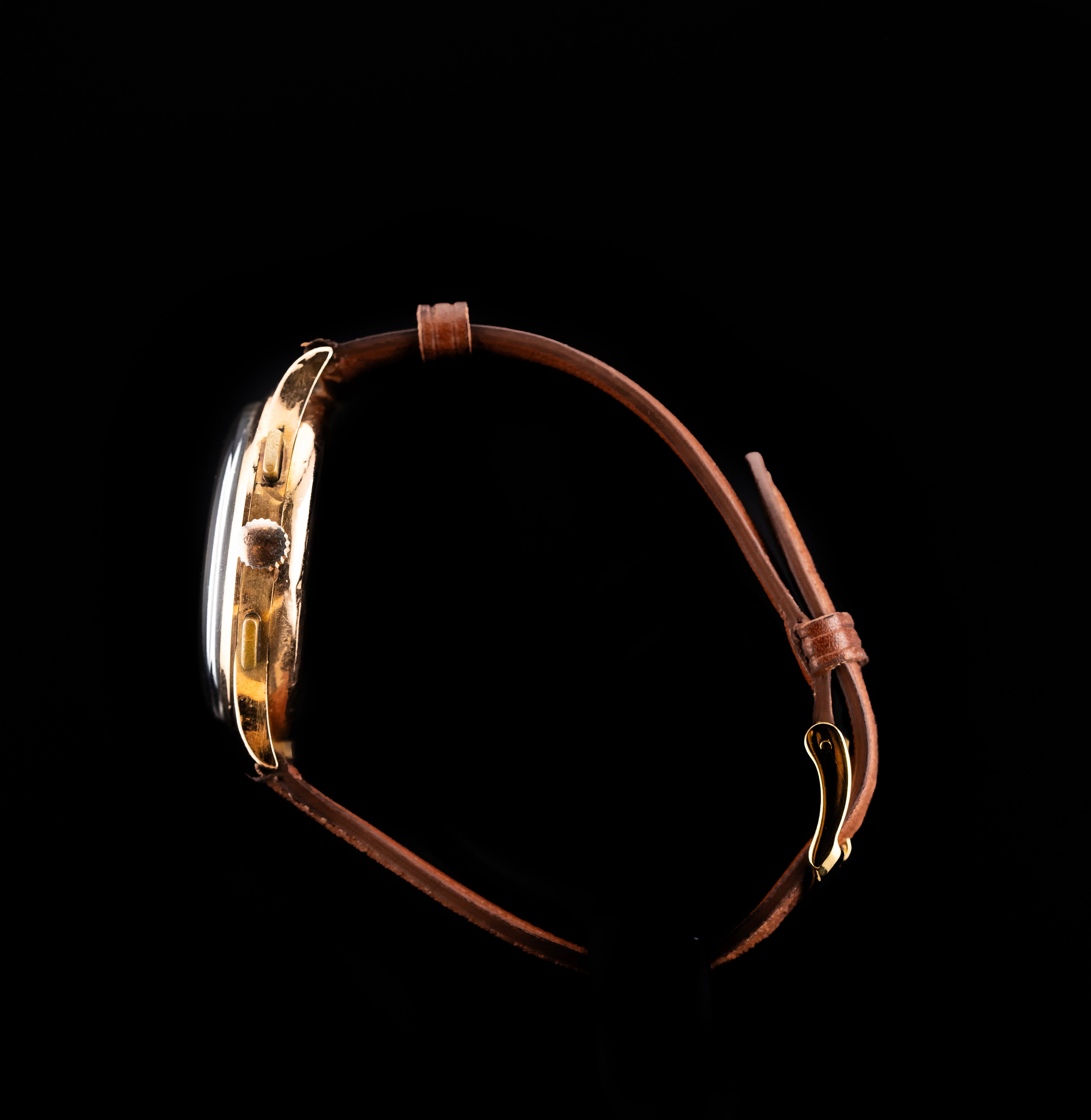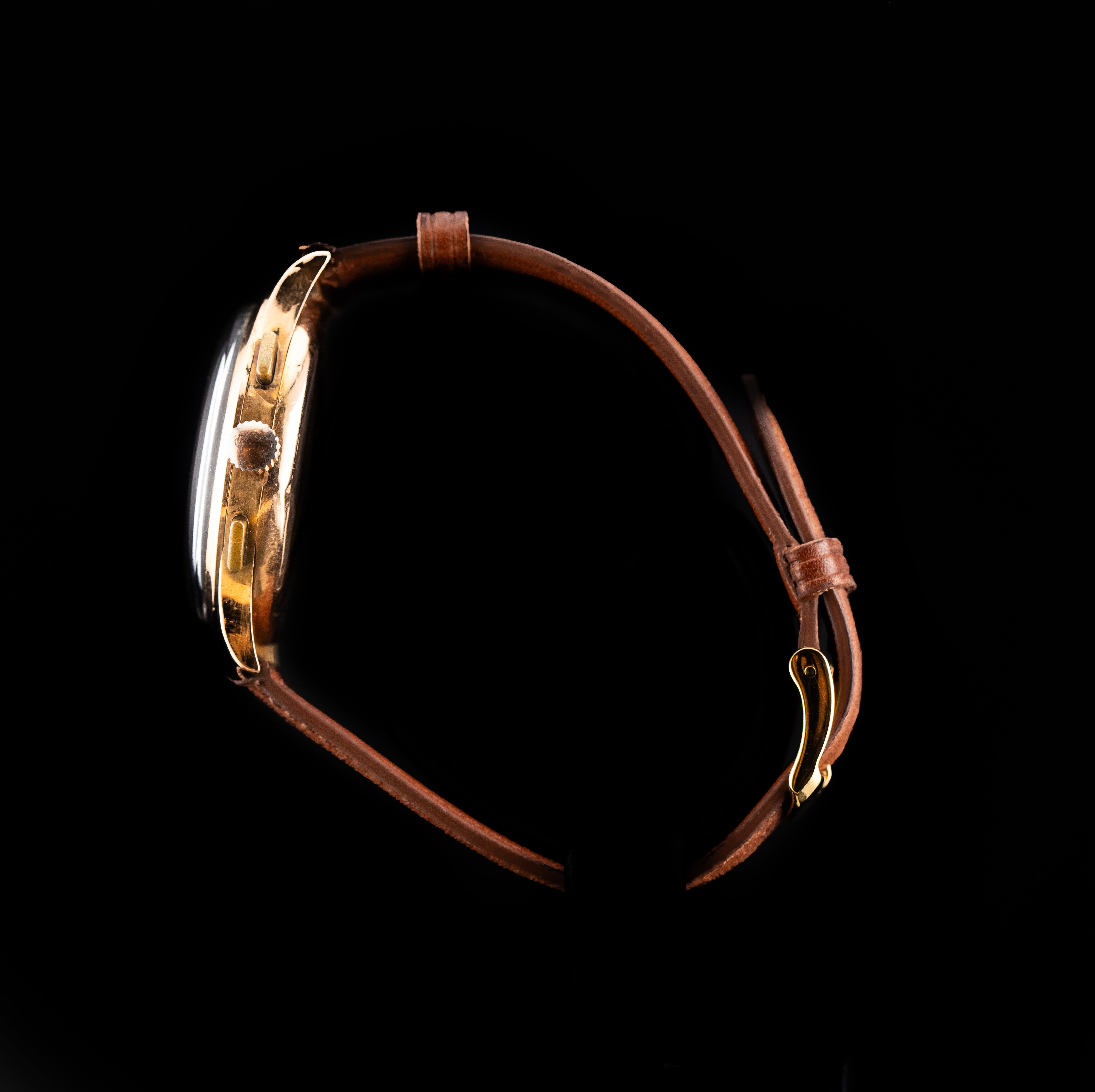 L'Atelier du temps à le plaisir de vous présenter ce beau Chronographe Suisse ("Golden dial") datant des 1950’s.