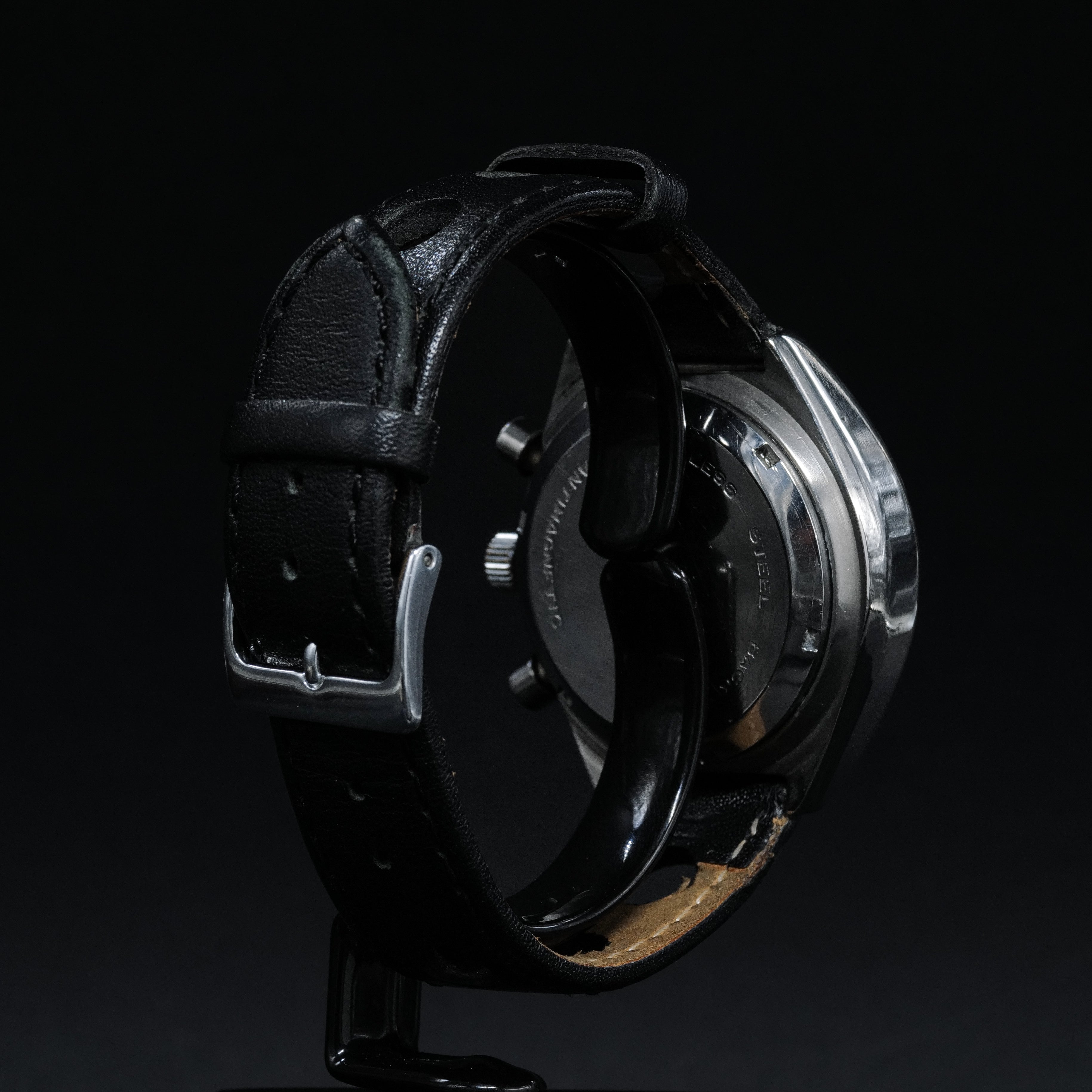 Son boîtier en Acier de belle taille 38mm est associé à un bracelet en cuir de 20mm d'entrecorne.