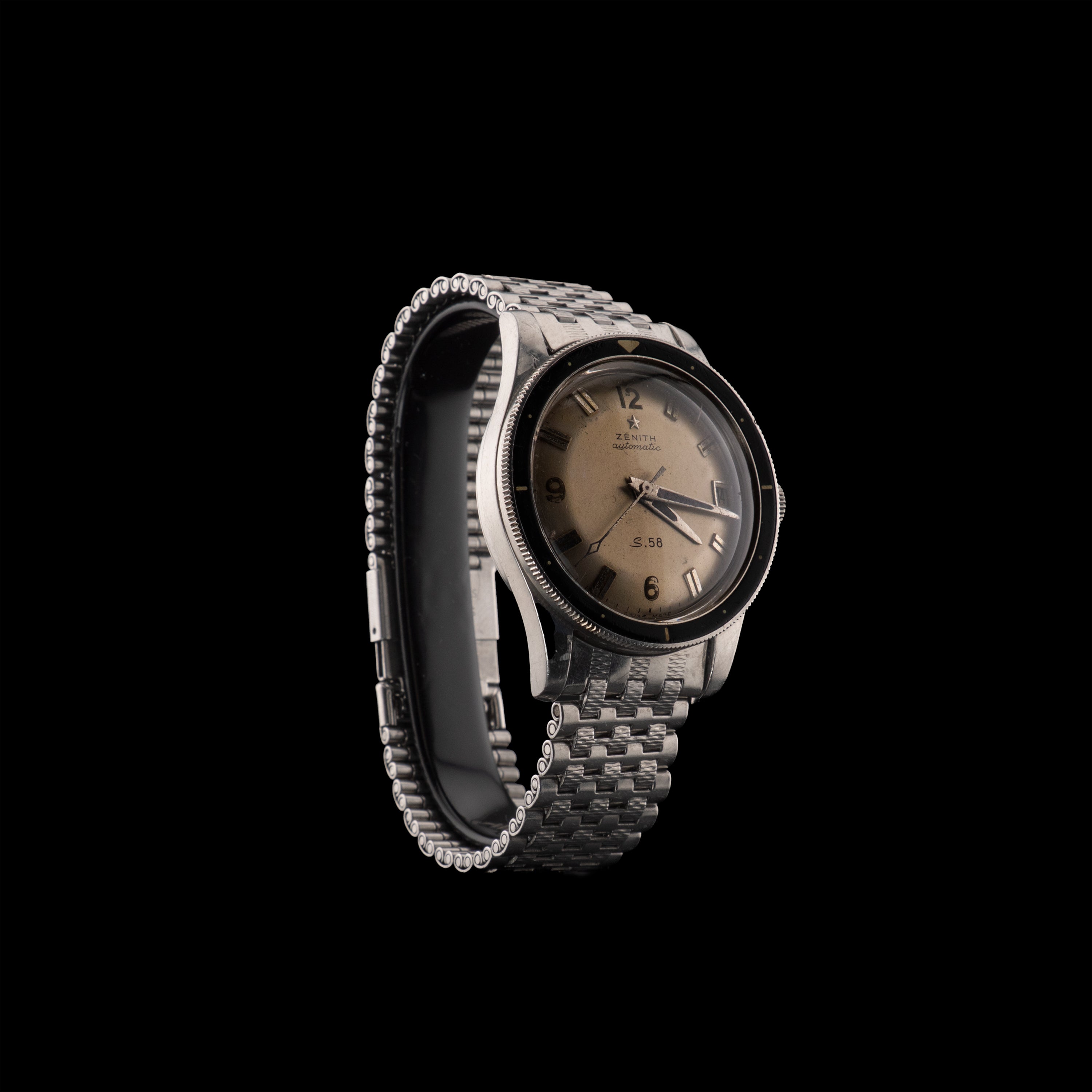 Lorsqu’il s’agit de la collection des montres vintage de plongée, leur état est connu pour être le critère le plus important. Ceci rend cette Zenith S.58 si spéciale. D’abord à cause de la vieillesse qui est d’environ 60 ans. Et deuxièmement, parce que la S.58 n’était pas une montre de collection à l’époque, mais une montre-outil, c’est pourquoi la plupart des exemplaires étaient utilisés régulièrement.