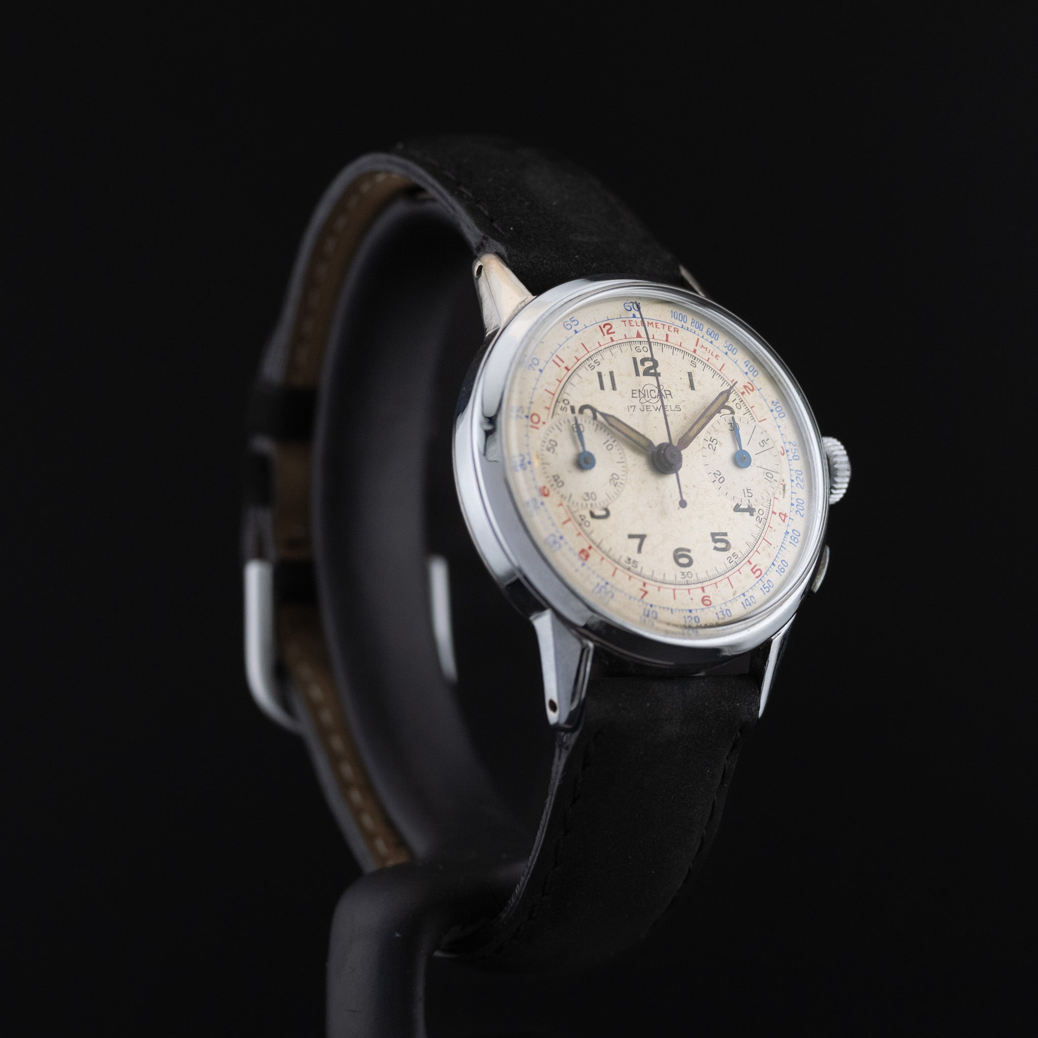 L'Atelier du temps à le plaisir de vous présenter cette Enicar «Chronographe» ("Cream dial") datant des 1950’s.