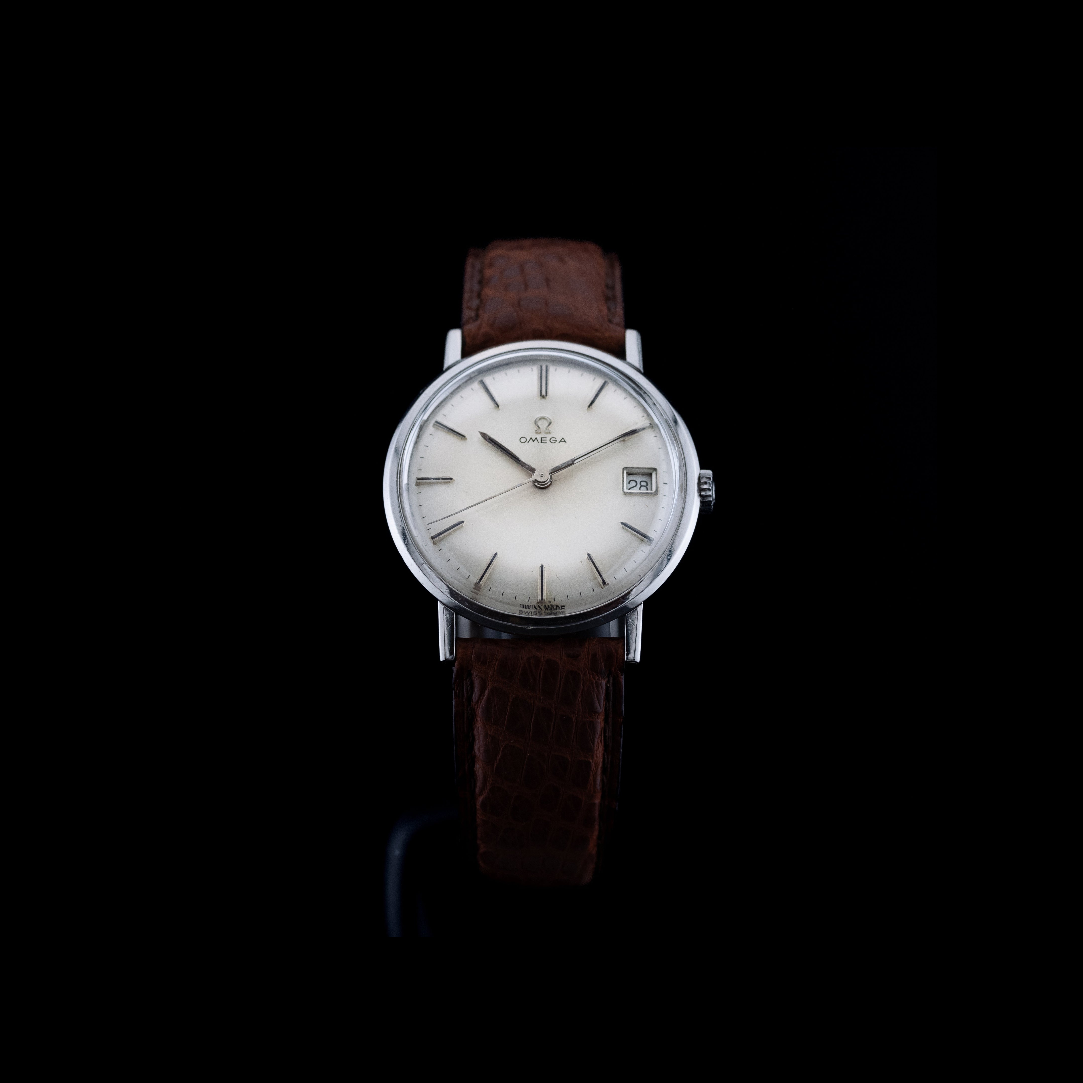 L’Omega référence 132.019 est une montre emblématique de la production suisse des années 1960, incarnant parfaitement l’élégance sobre et intemporelle propre à la maison Omega. Conçue en acier inoxydable, elle présente un boîtier de 34 mm de diamètre, une taille classique particulièrement appréciée des amateurs de montres vintage pour son équilibre et son raffinement au poignet. Ses proportions harmonieuses lui permettent d’être portée aussi bien avec une tenue habillée qu’au quotidien, offrant une présence discrète mais affirmée.