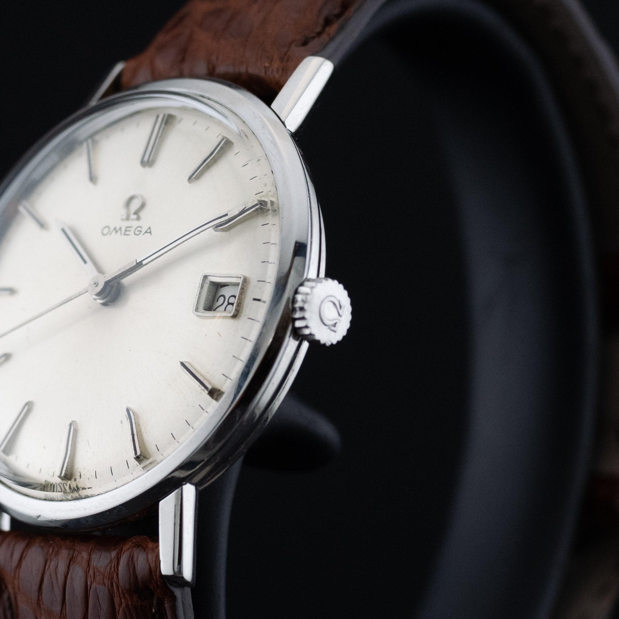 La présence de la couronne d’origine constitue un atout important pour les collectionneurs, attestant de l’authenticité et de la cohérence de l’ensemble. Le fond vissé en acier assure quant à lui une protection efficace du mouvement tout en témoignant d’une conception robuste et durable. Ce détail technique souligne le sérieux de fabrication et la qualité de finition propres à Omega.