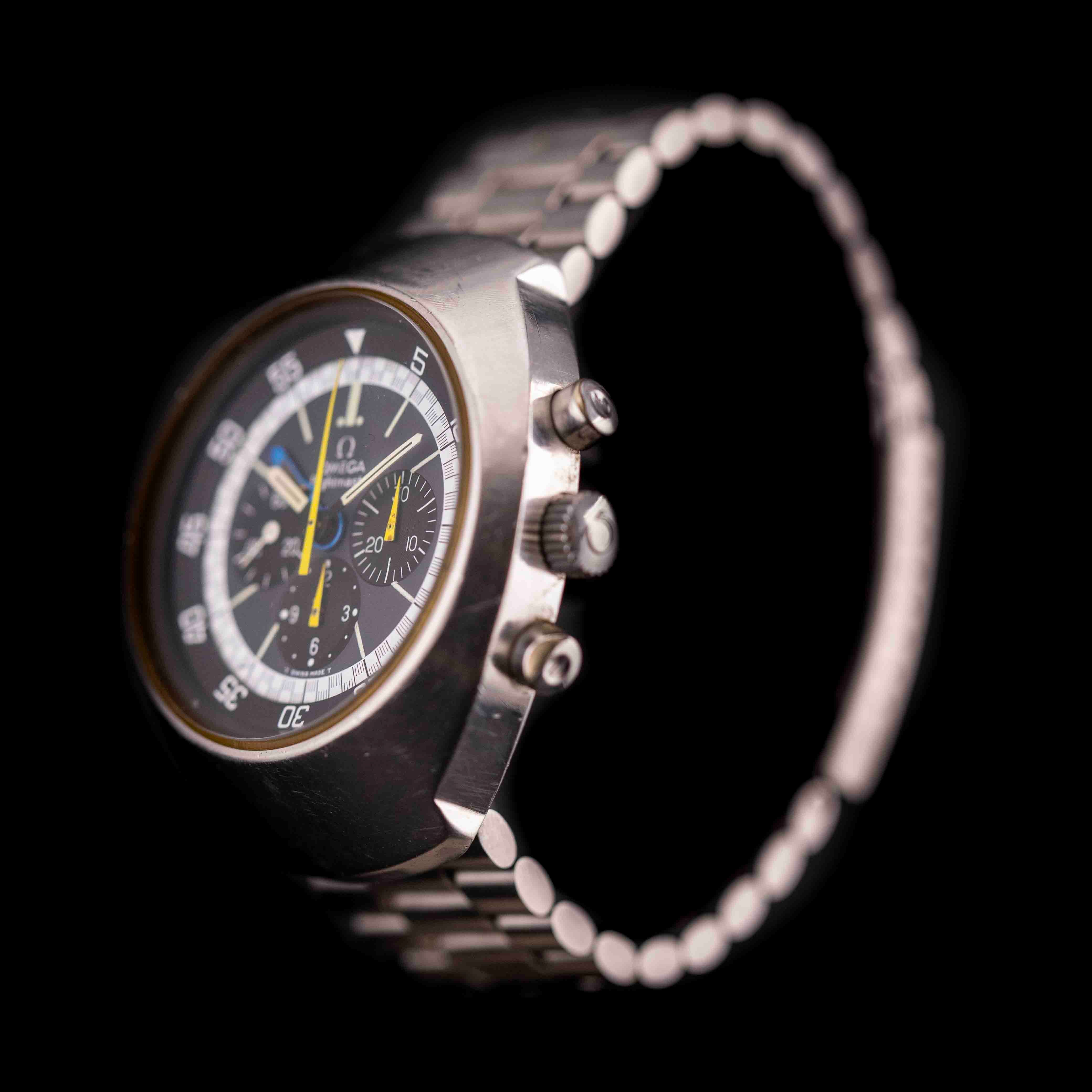 La Flightmaster voit officiellement le jour en 1969. Et dès le début, l’objectif d’Omega n’est pas de concevoir une montre inspirée de l’aviation, mais bel et bien montre spécifiquement étudiée pour être utilisée en vol par les pilotes d’avion. Une montre pour les professionnels, au même titre que la Speedmaster ou la Seamaster. Ainsi, le cahier des charges est à la fois exigeant et précis : un cadran coloré avec indicateur AM/PM avec minuterie motif racing, une fonction chronographe avec totalisateur de 12 heures, une aiguille indépendante pour un second fuseau horaire et une lunette tournante interne.