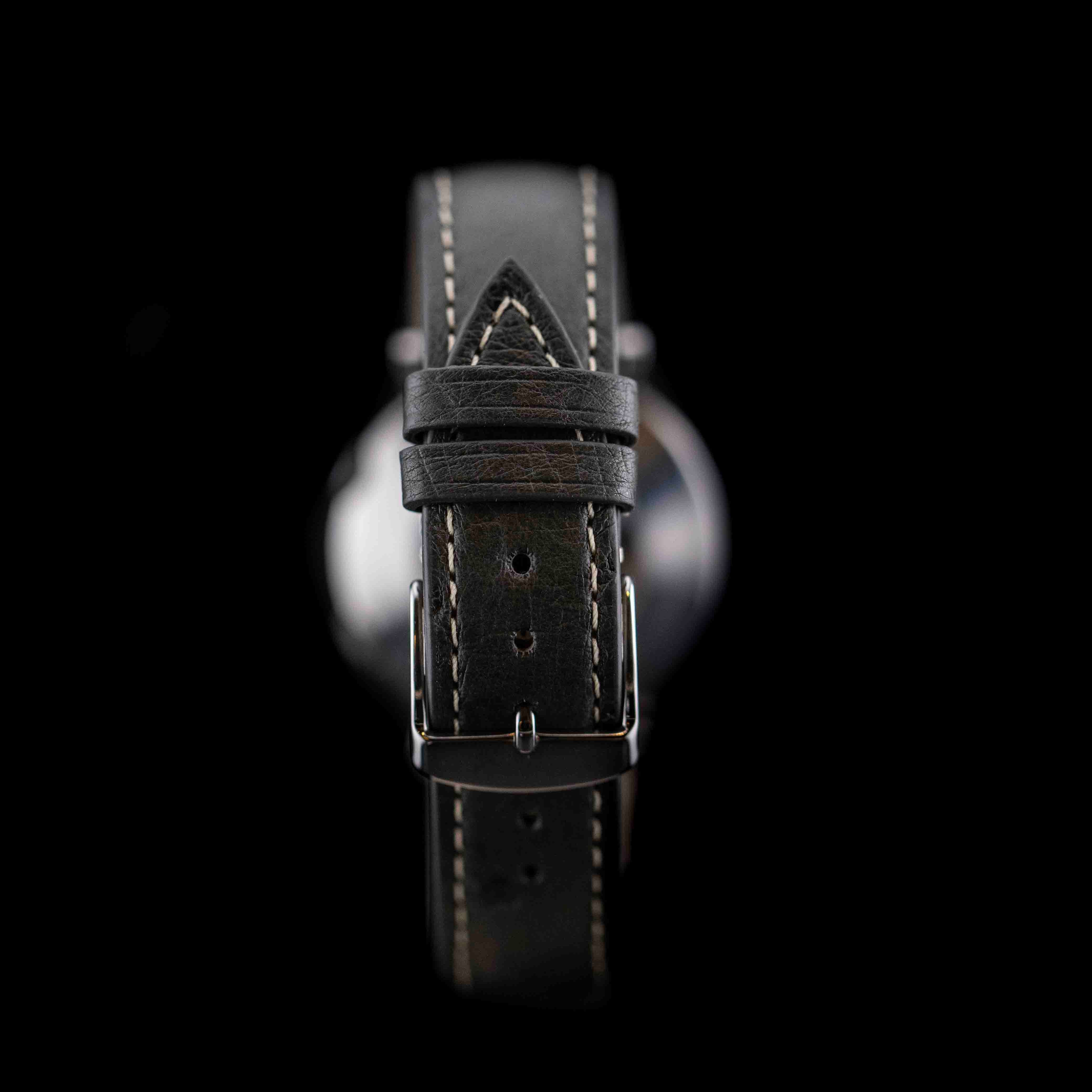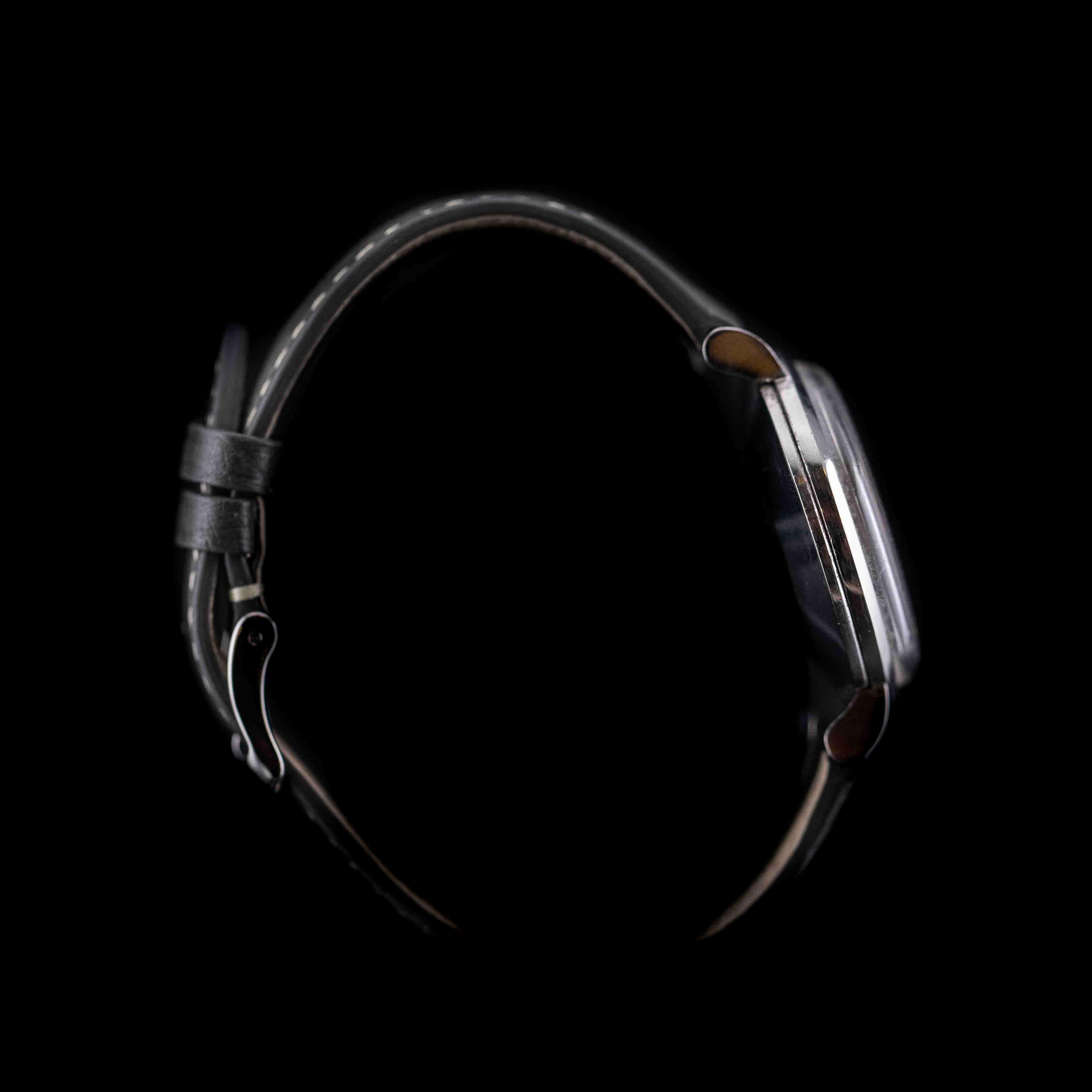 La montre est habillée d'un bracelet cuir avec ardillon d'origine.La montre possède une couronne d'origine.