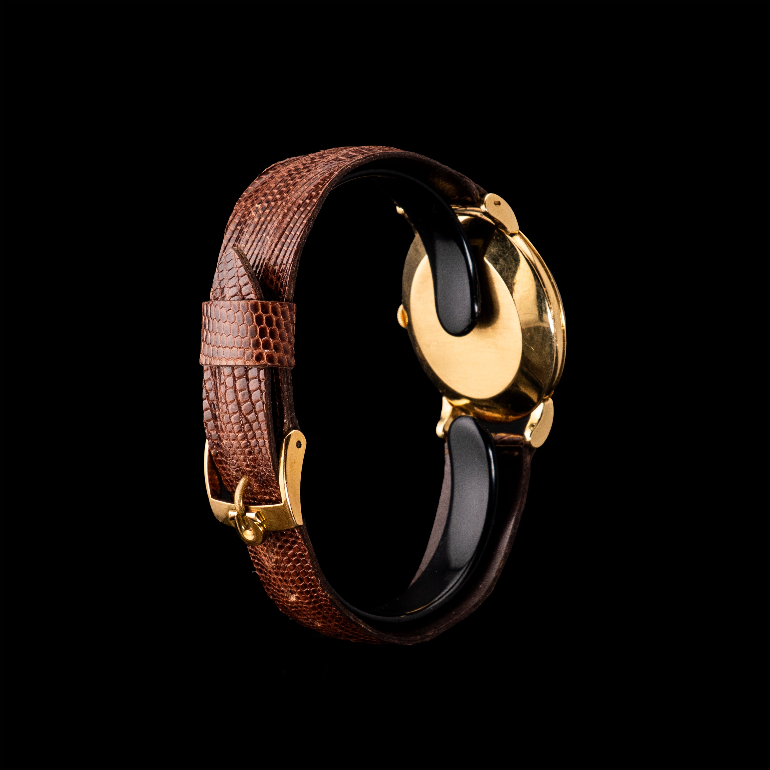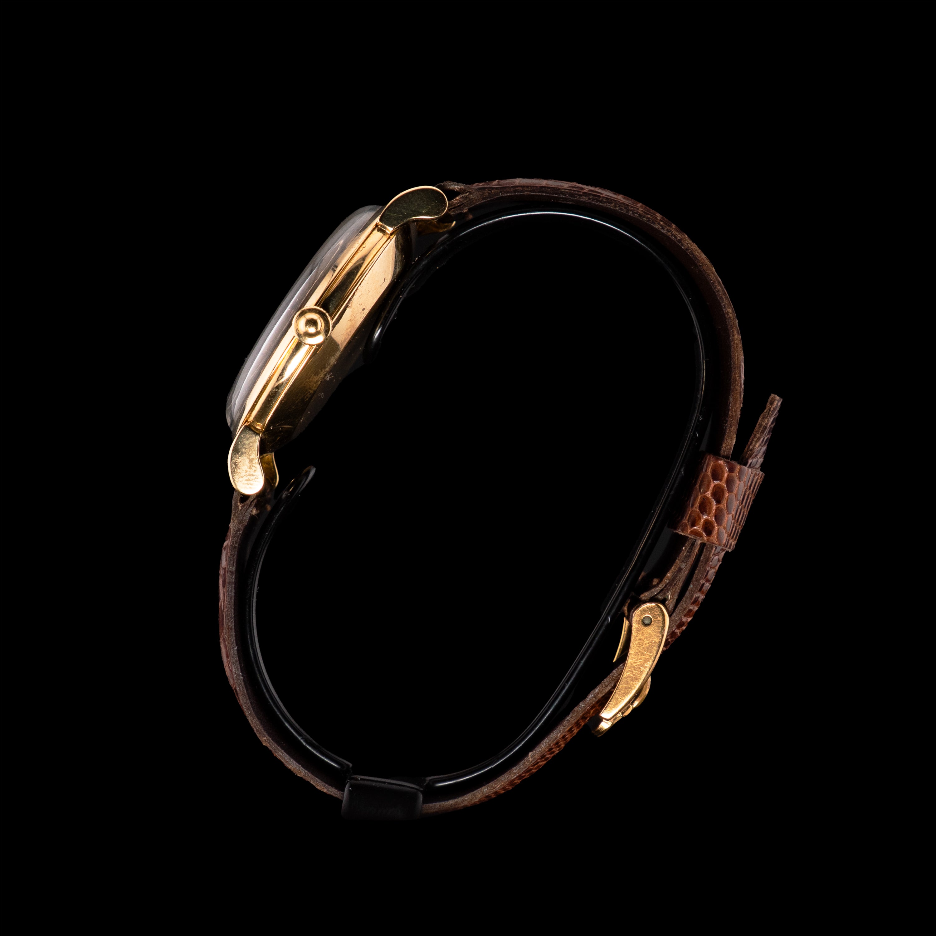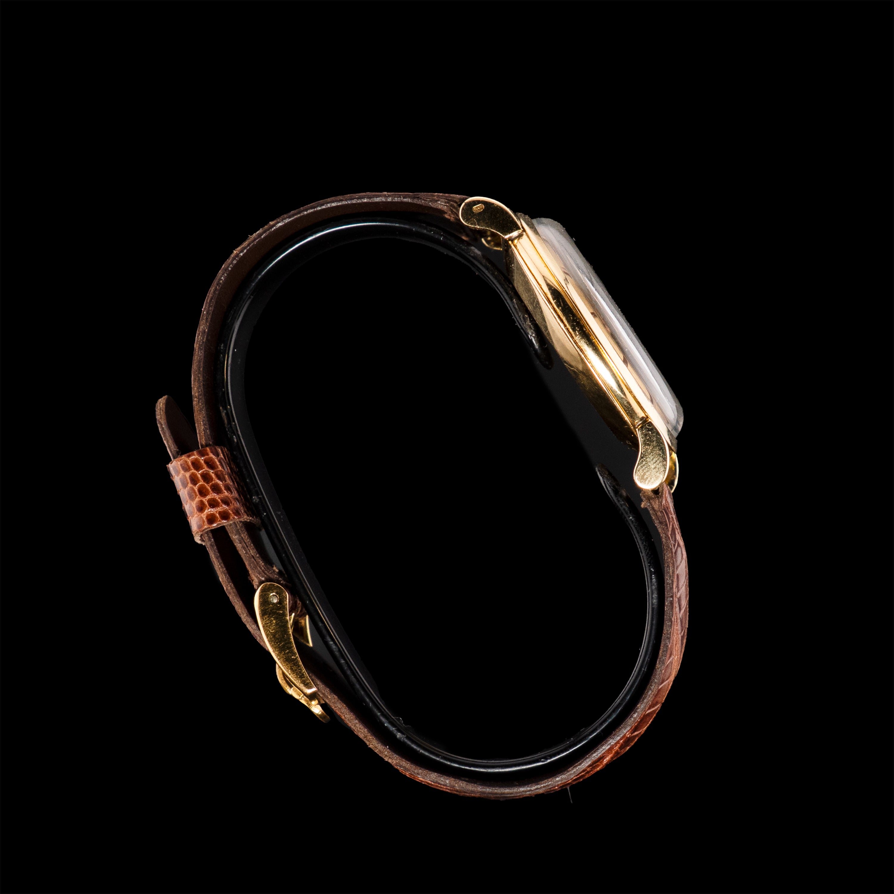 La montre possède une couronne d'origine, ainsi que son ardillon d'origine en or sur un bracelet en cuir.