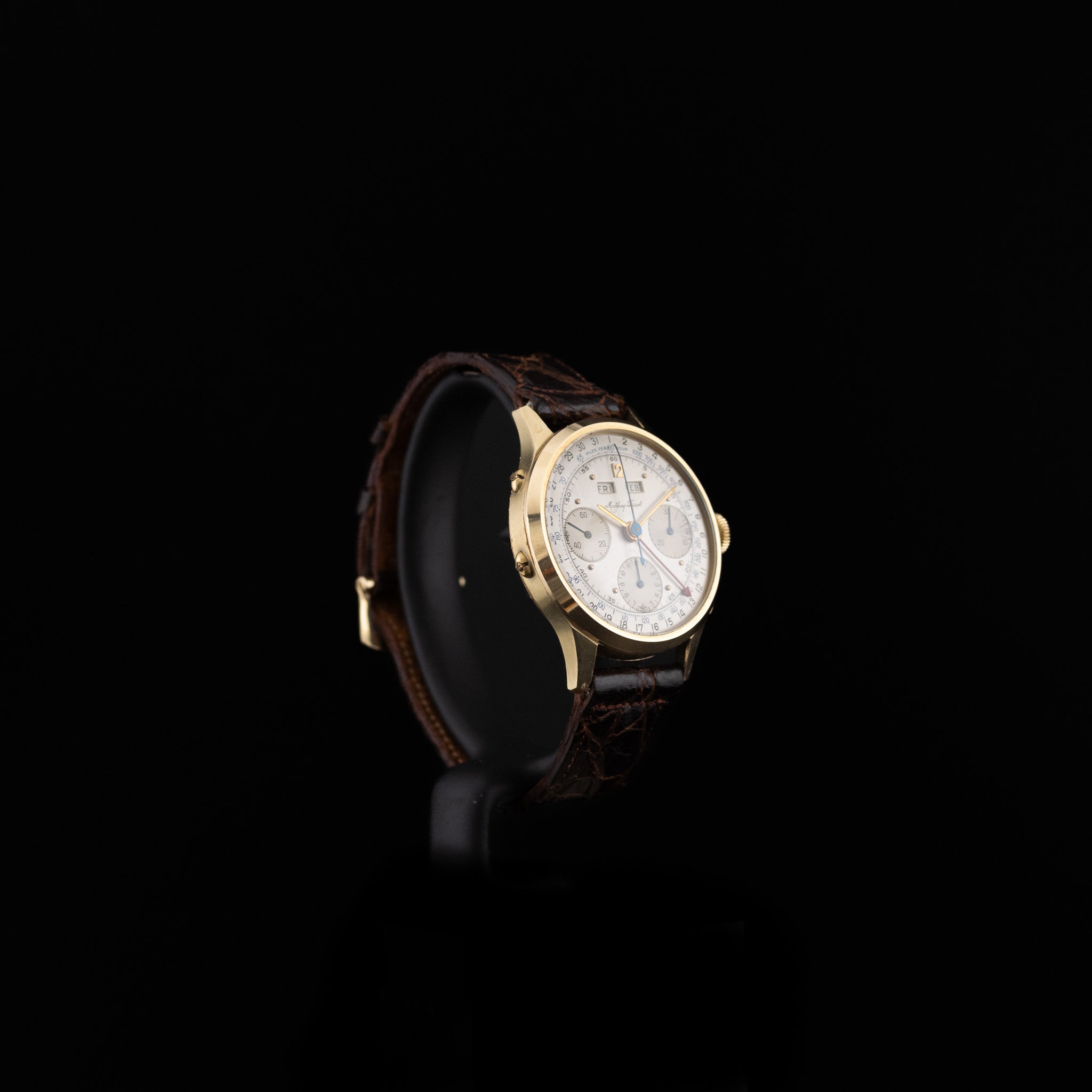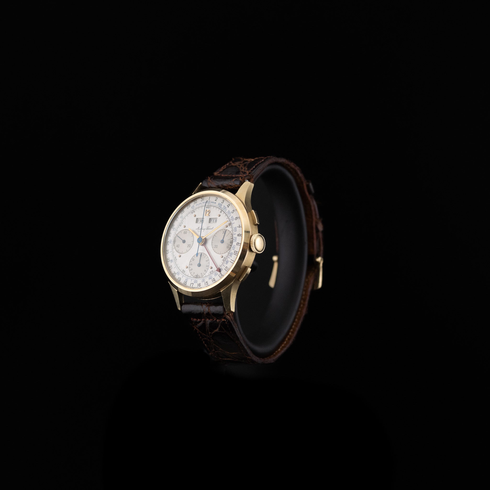 Au fil des décennies, Mathey-Tissot reste fidèle à son credo d’excellence technique et esthétique, tout en restant une manufacture indépendante, libre des grands groupes horlogers. Cette autonomie artistique se reflète dans des créations comme ce chronographe triple date des années 1950 : une pièce qui incarne l’alliance parfaite entre tradition horlogère suisse, élégance intemporelle et fonctionnalité raffinée.
