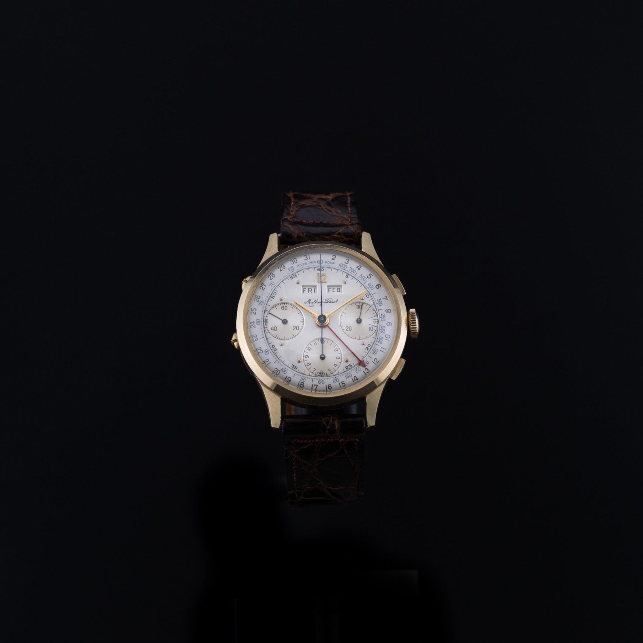 L'Atelier du temps à le plaisir de vous présenter cette Mathey Tissot Chronographe «Triple date» ("Grey dial") datant des 1950’s.