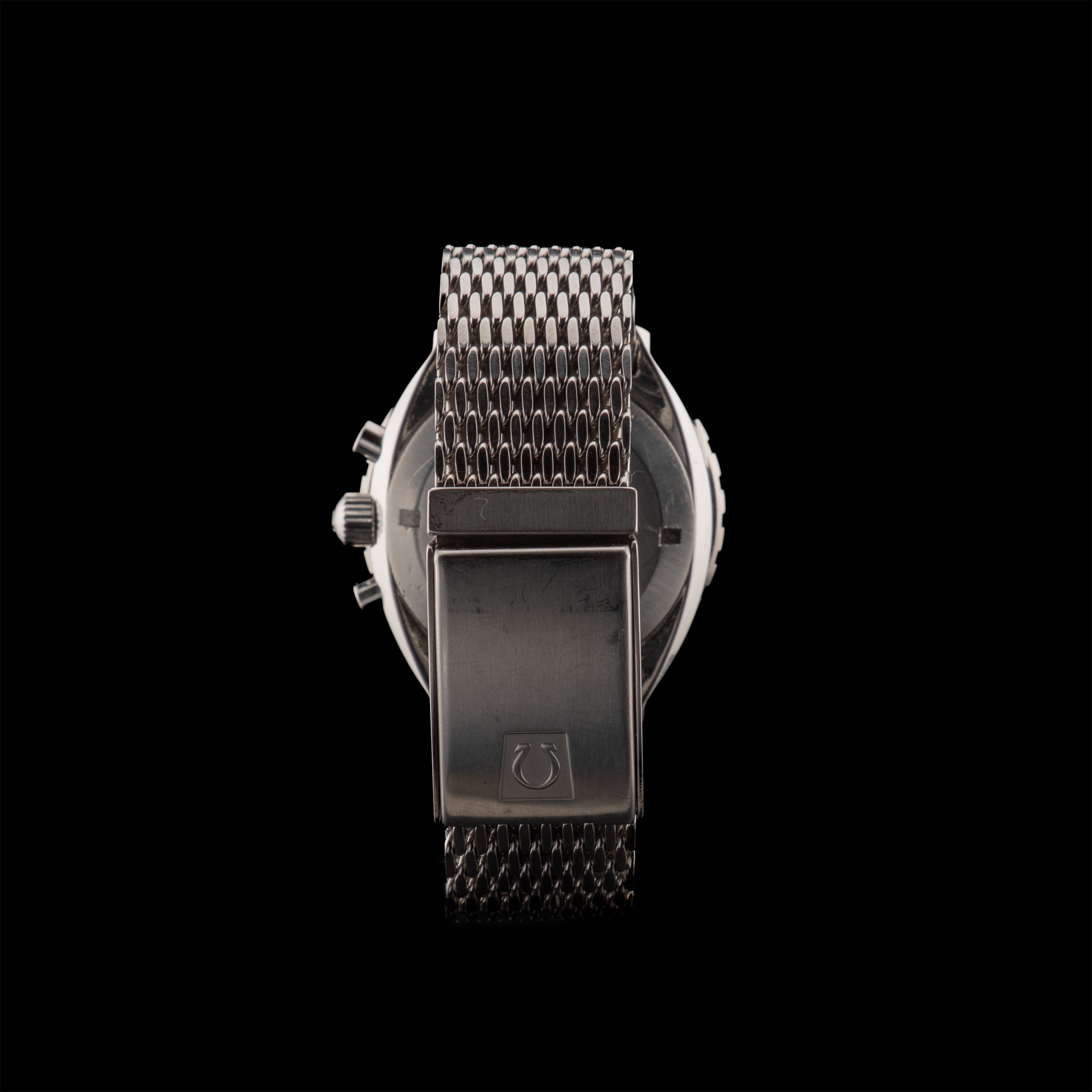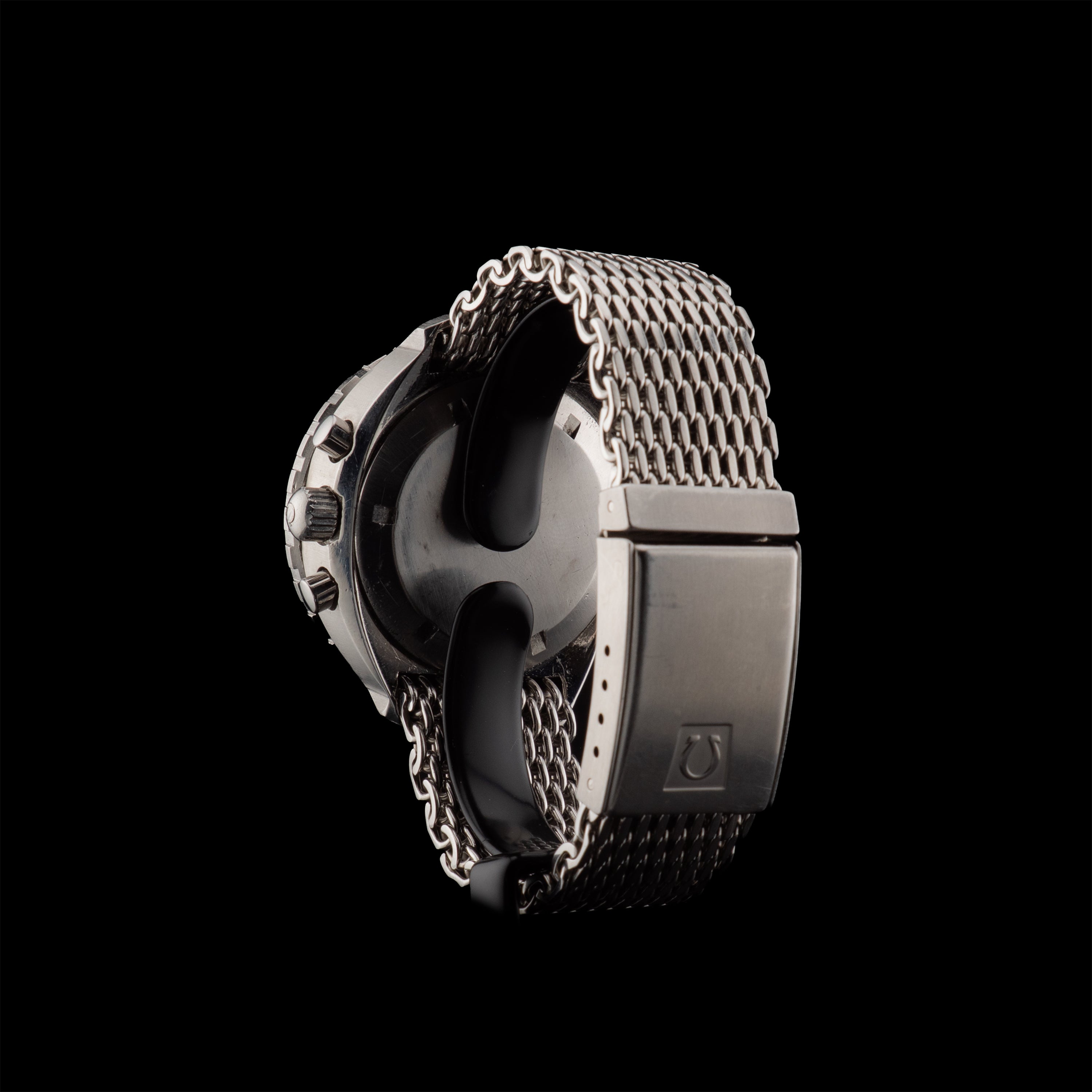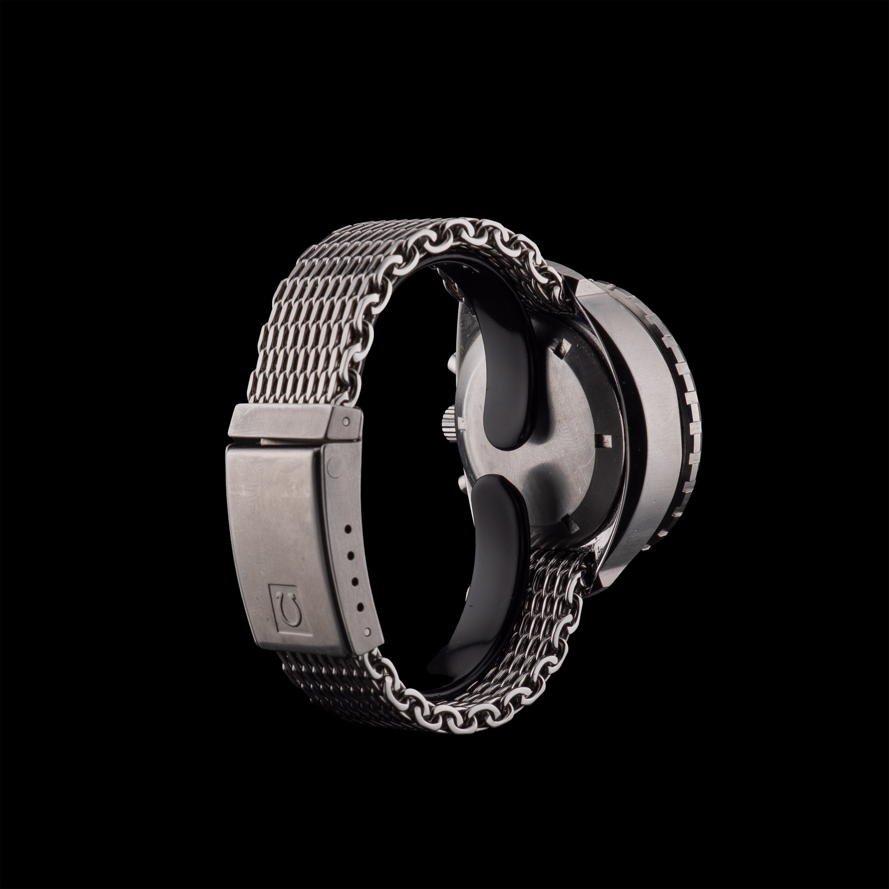 Bracelet de plongée à mailles épaisses signé Omega sur fermoir de plongée à dégagement rapide