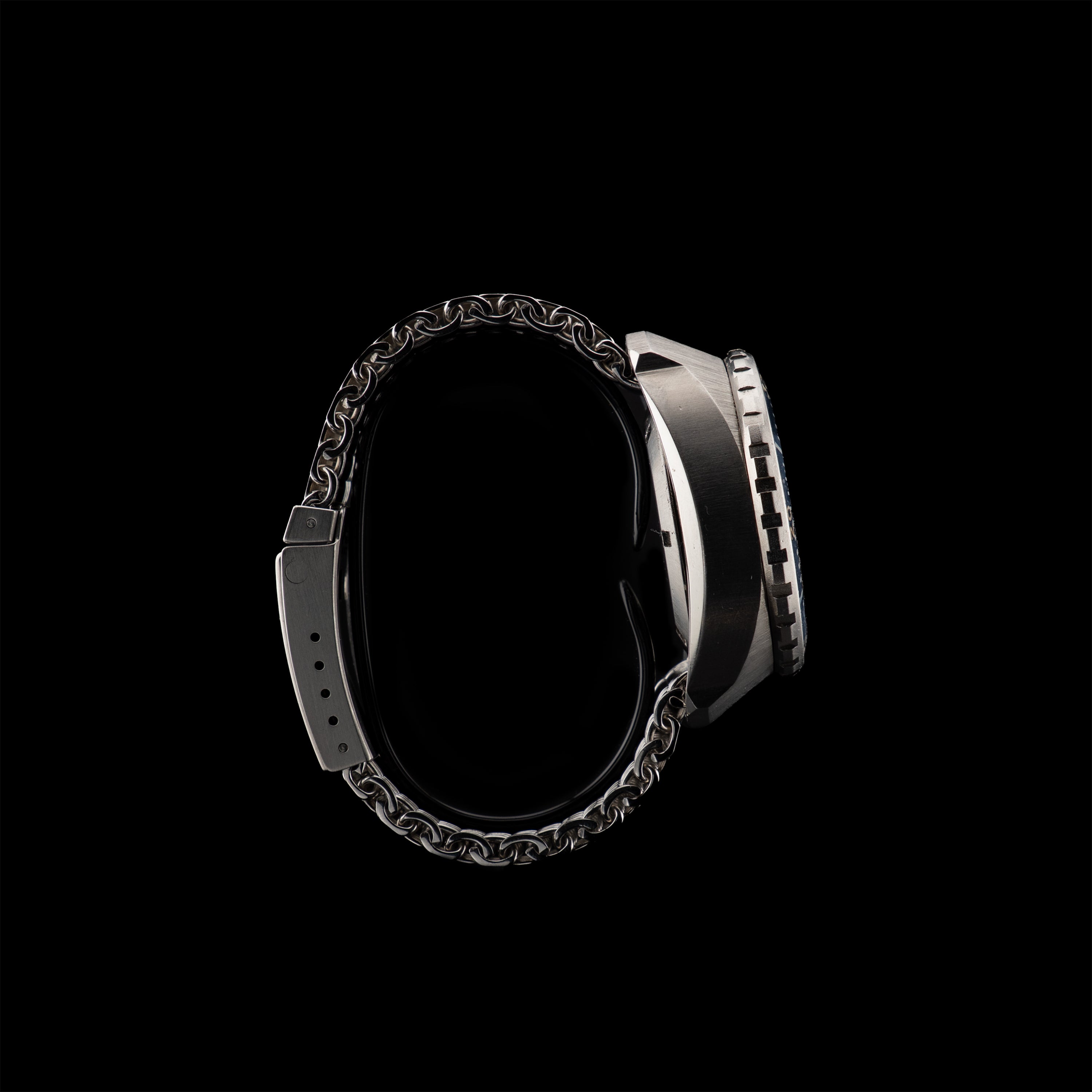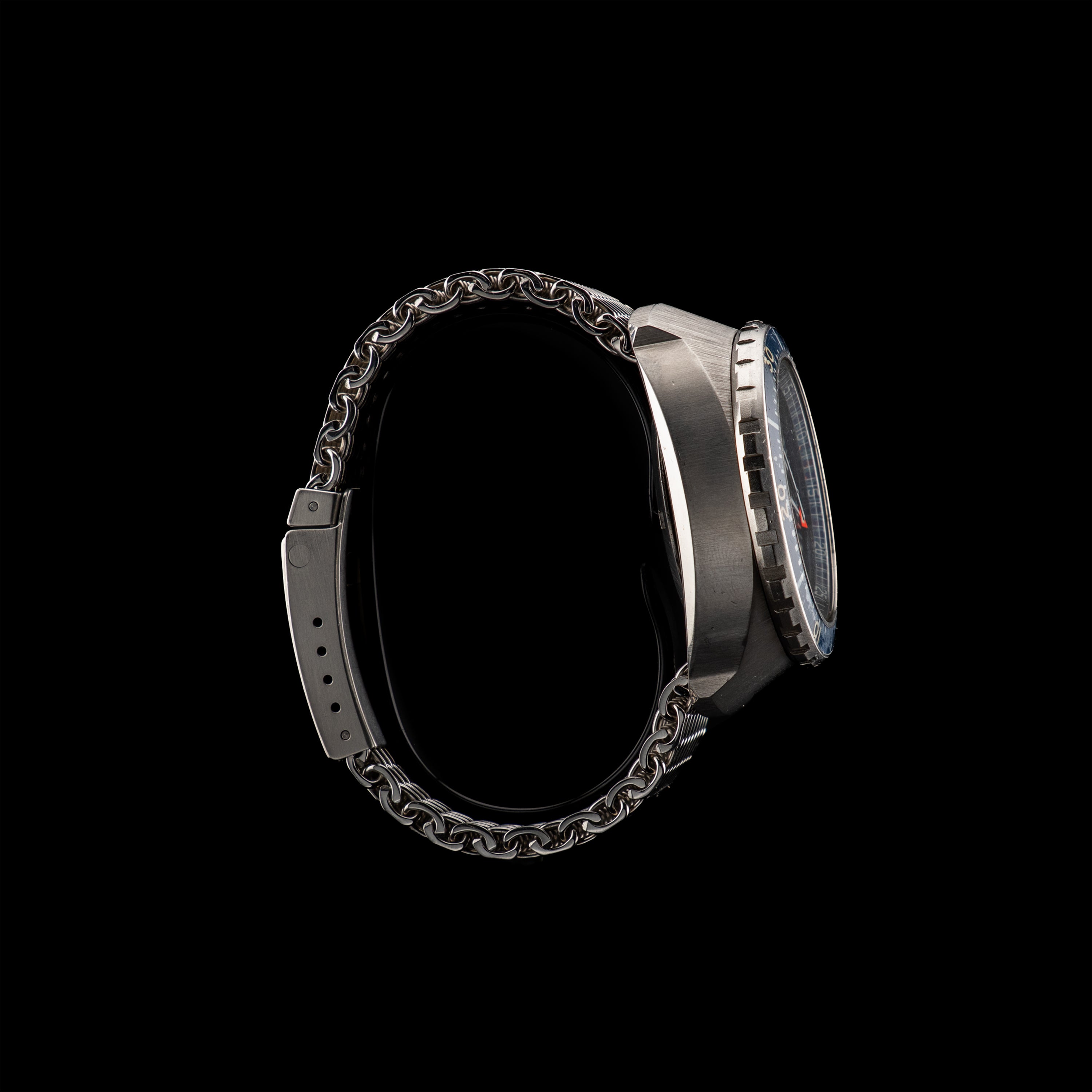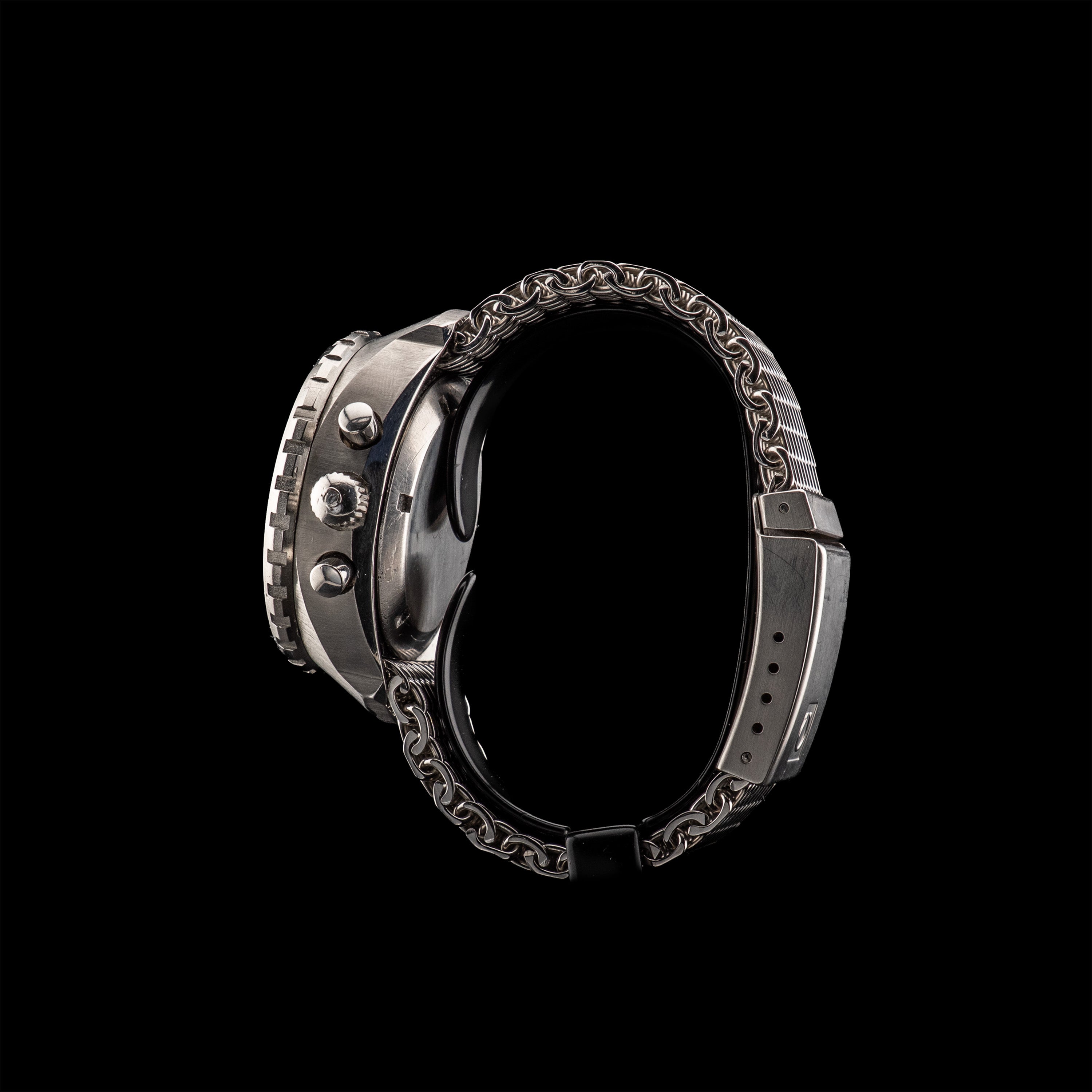 Bracelet de plongée à mailles épaisses signé Omega sur fermoir de plongée à dégagement rapide