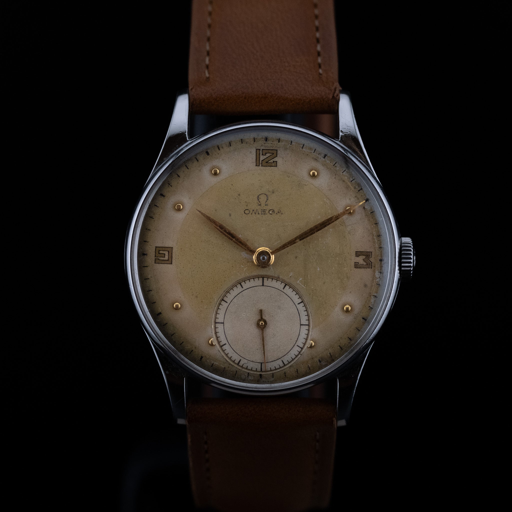 L'Atelier du temps à le plaisir de vous présenter cette Omega «Tuxedo Petite Seconde» ("Chocolate dial") datant de 1944.