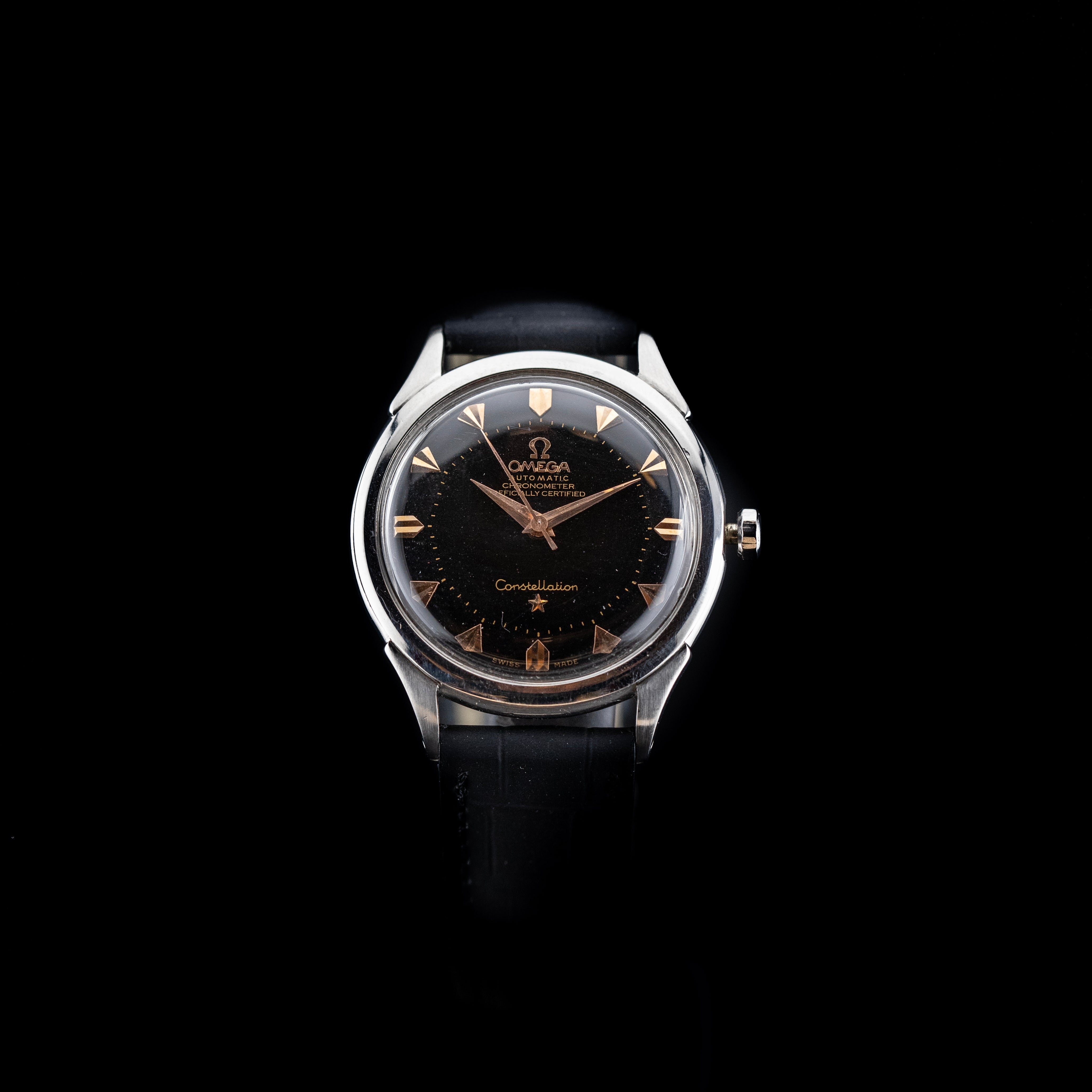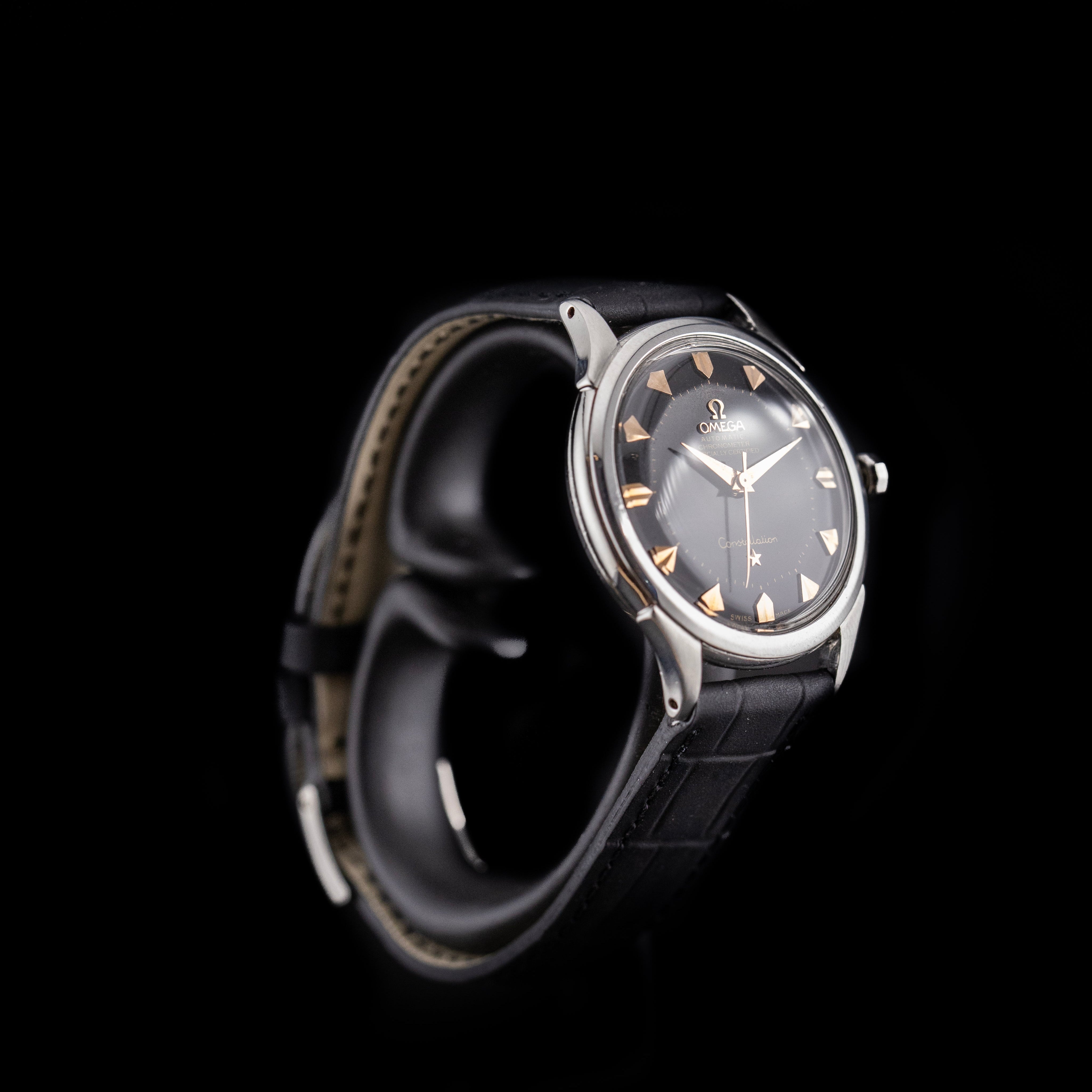 L'Atelier du temps à le plaisir de vous présenter cette belle Oméga Constellation "Pie pan" 2852 ("Black dial") datant de 1956.