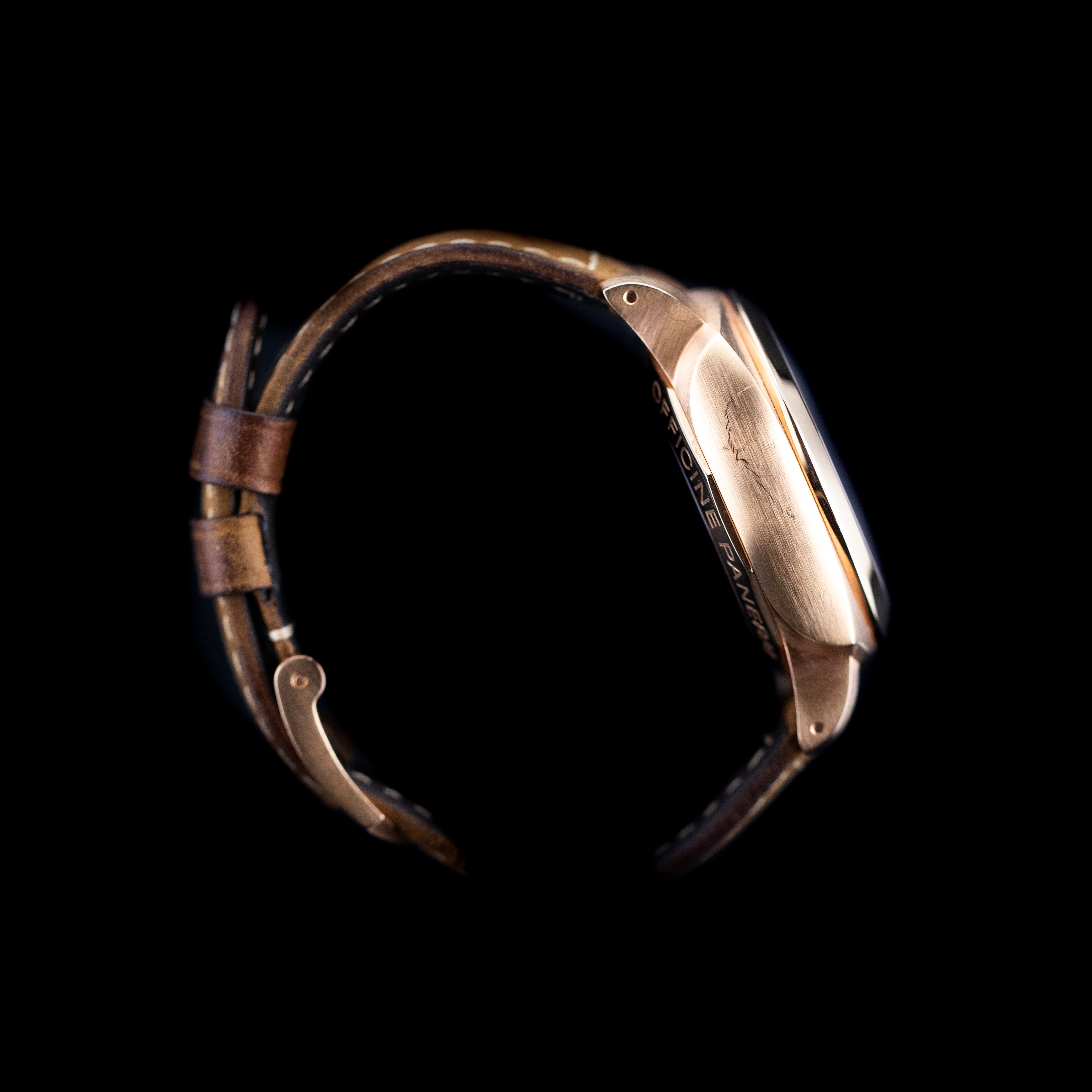Son boîtier en or rose 18 carats de 42 mm incarne le luxe discret et la noblesse des matériaux, tout en conservant l’esprit sportif et technique propre à la collection Luminor. Le protège-couronne signature, emblème de la marque, vient rappeler l’ADN marin de cette montre conçue à l’origine pour les commandos de la marine italienne.