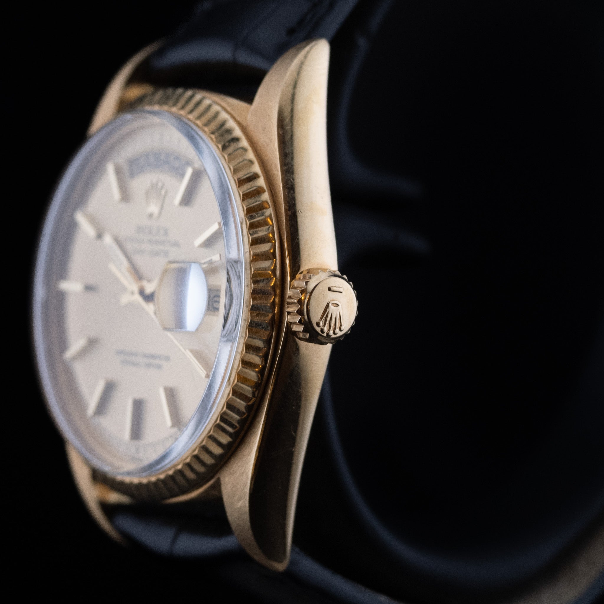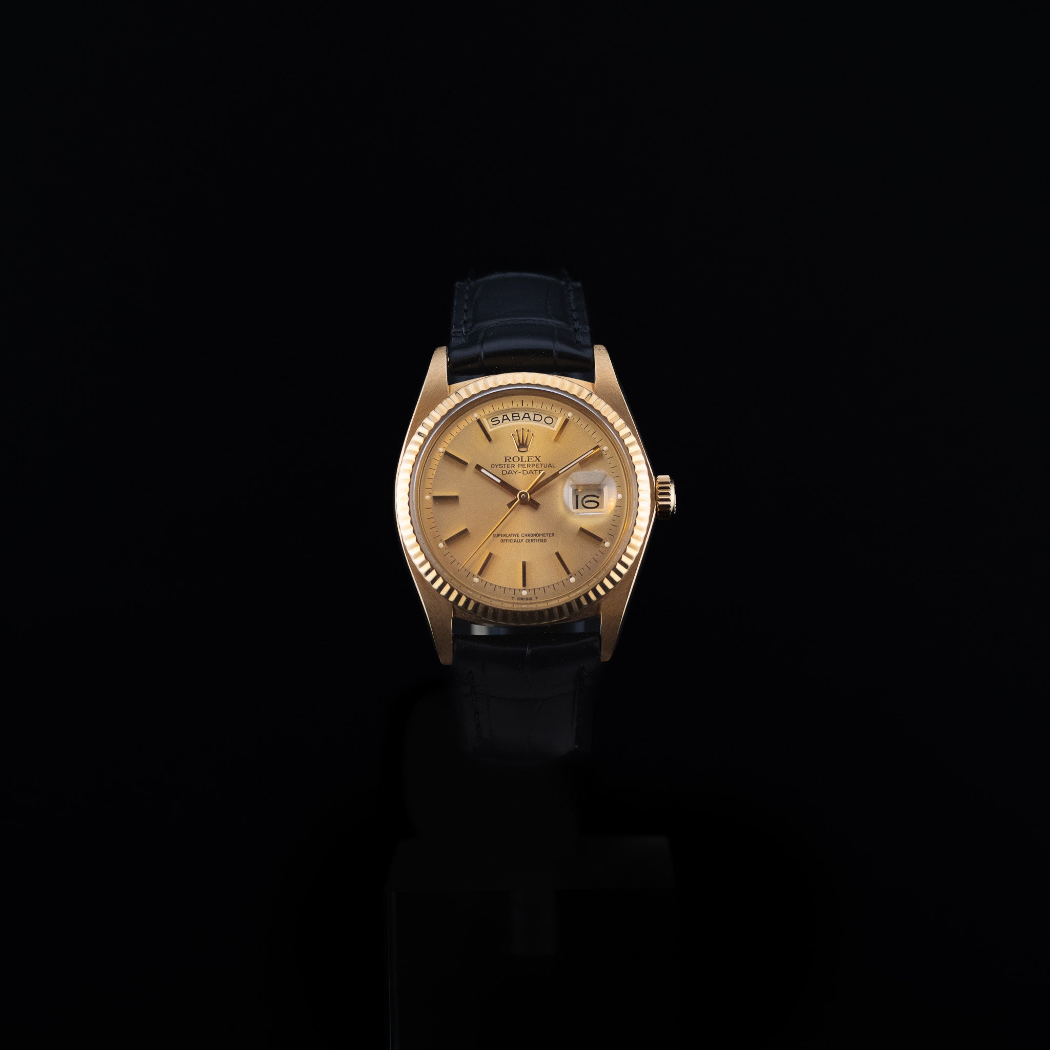 L'Atelier du temps à le plaisir de vous présenter cette Rolex Day Date ("Golden dial") datant de 1978.