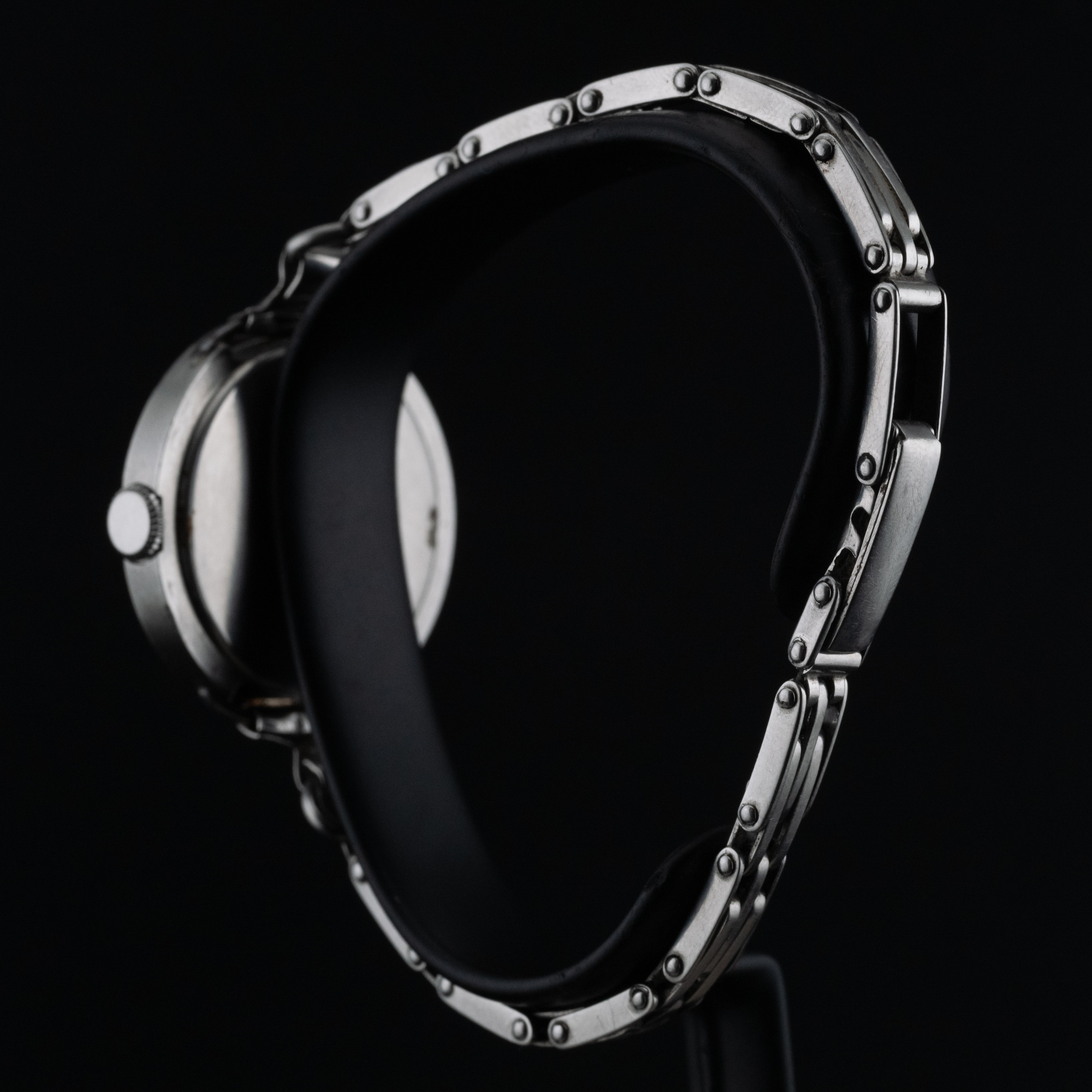 Cette montre est équipée d’un mouvement mécanique à remontage manuel, fidèle aux traditions horlogères de l’époque. Ce type de mécanisme, apprécié des puristes, offre une expérience authentique, rythmée par le geste quotidien du remontage, véritable lien entre l’objet et son propriétaire.