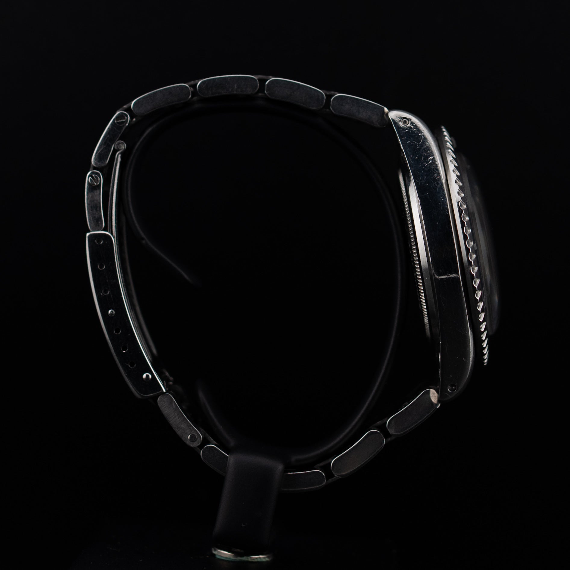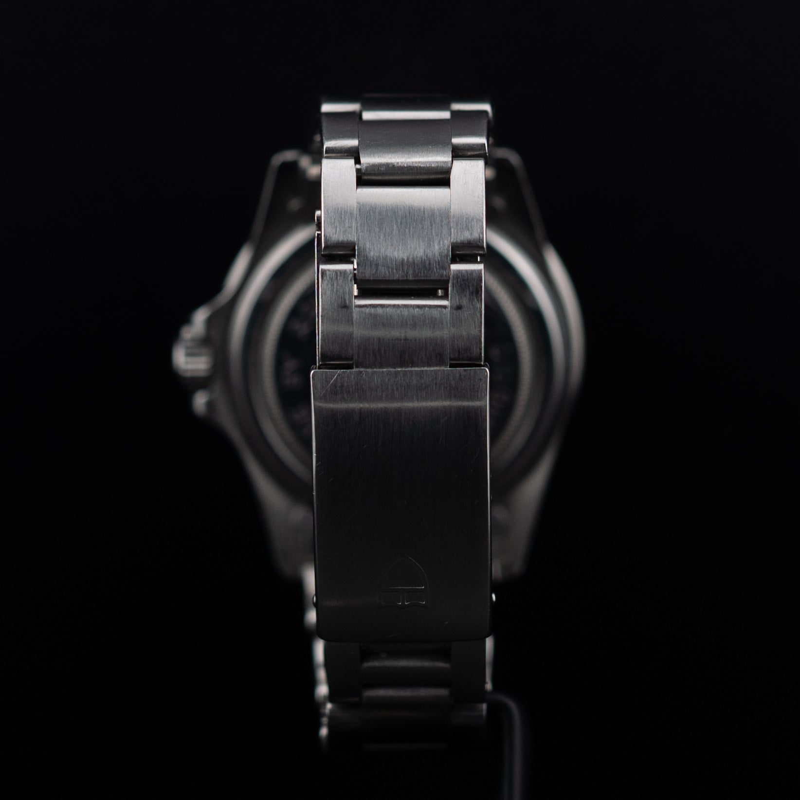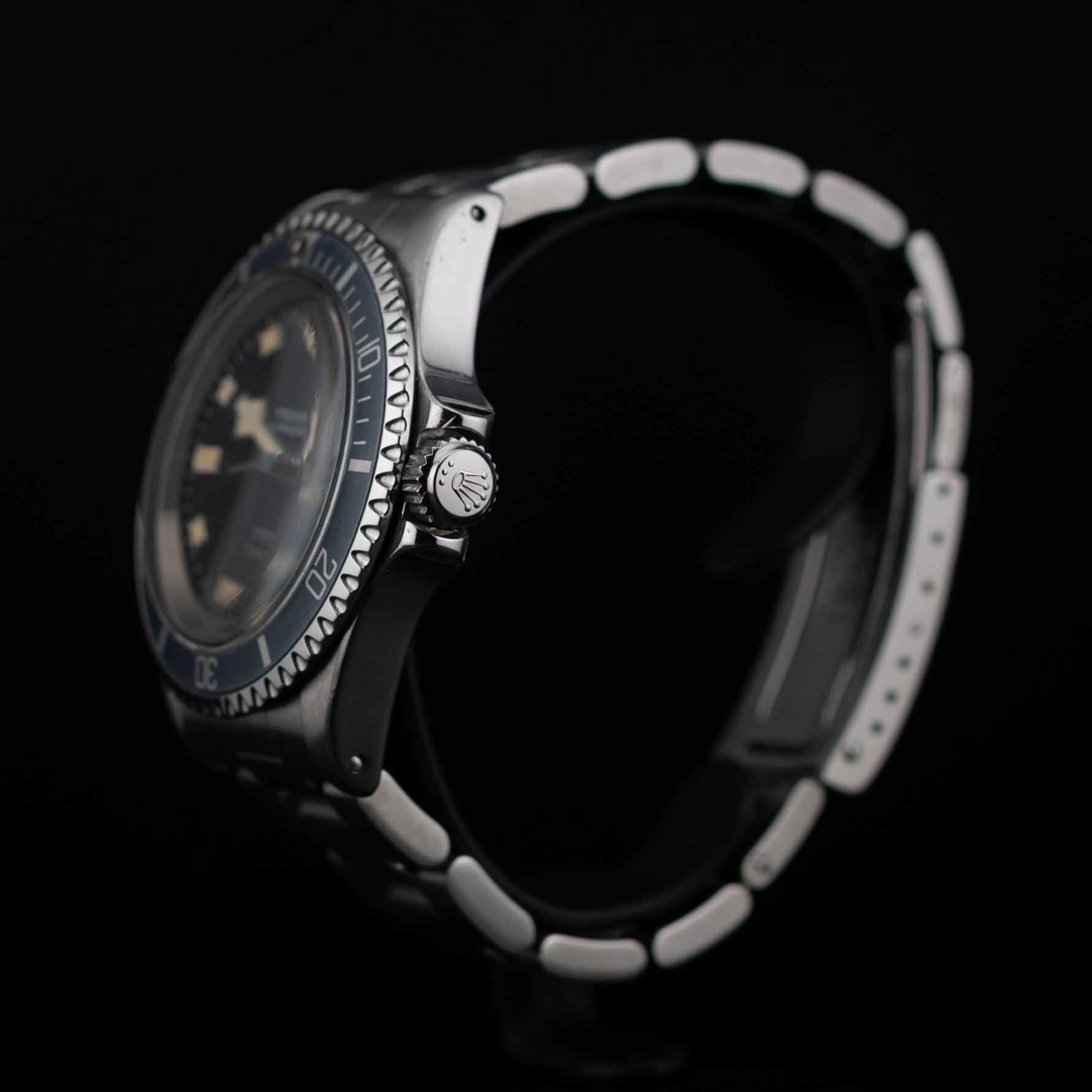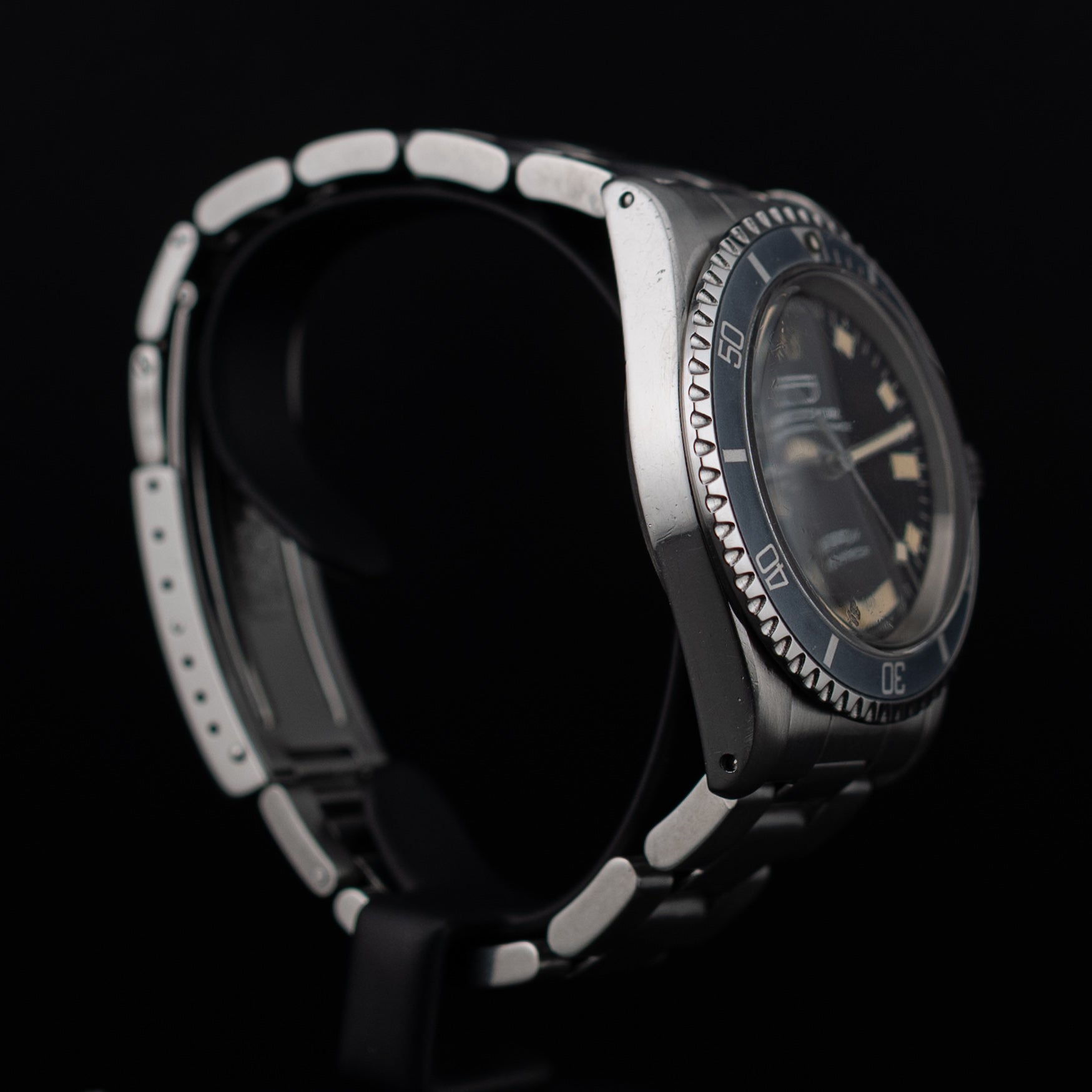 l existe quatre combinaisons de cadrans et lunettes pour cette référence, à savoir bleu ou noir avec des aiguilles et des index "Snowflakes" ou bien bleu ou noir avec des aiguilles Submariner caractéristiques et des index de forme triangulaire et ronde. L'exemplaire présenté ici est monté avec un cadran noir dit "Snowflake".