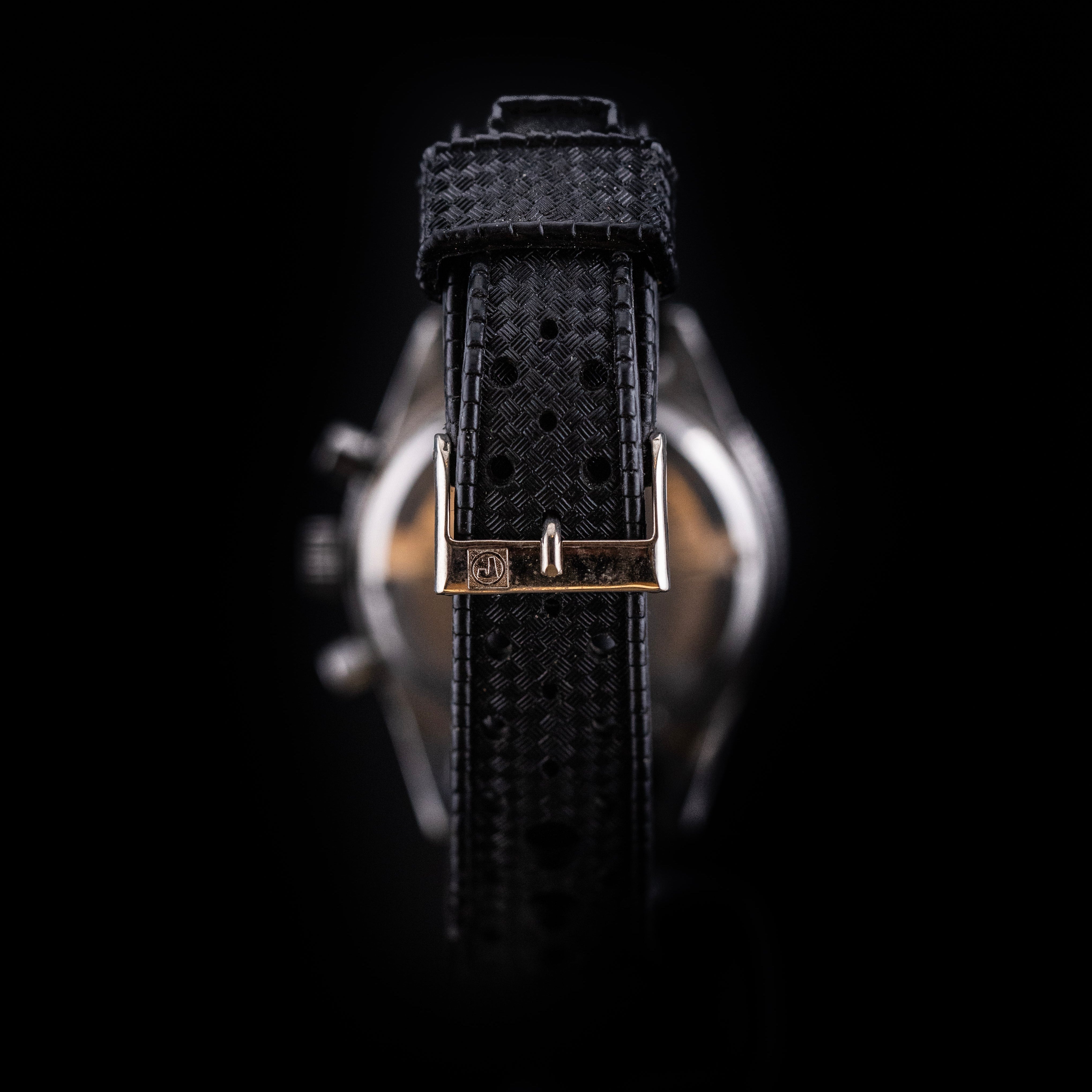 La montre intègre un mécanisme à remontage manuel Valjoux 7730 offrant une grande précision dans le réglage de l'heure, mais aussi un chronographe régate à 3 heures sur le cadran.